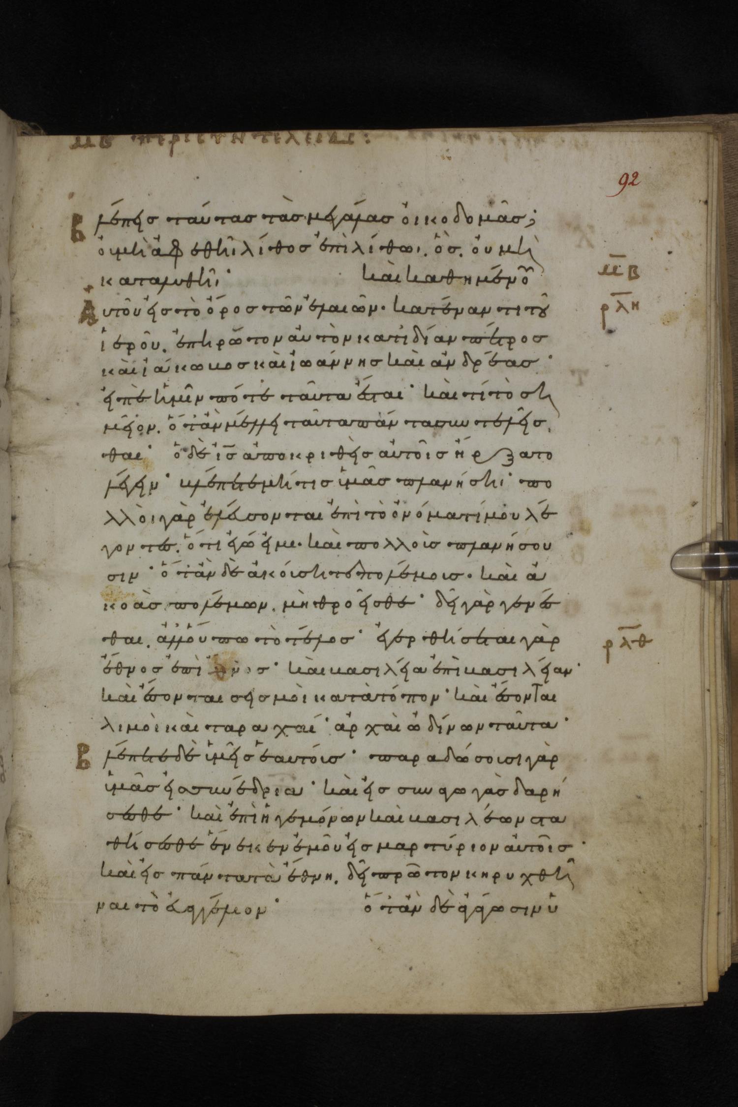 Eleventh century minuscule of the Gospels on parchment; 231 leaves, 1 column, 24 lines per column. Images were taken at the National Library of Greece in Athens.