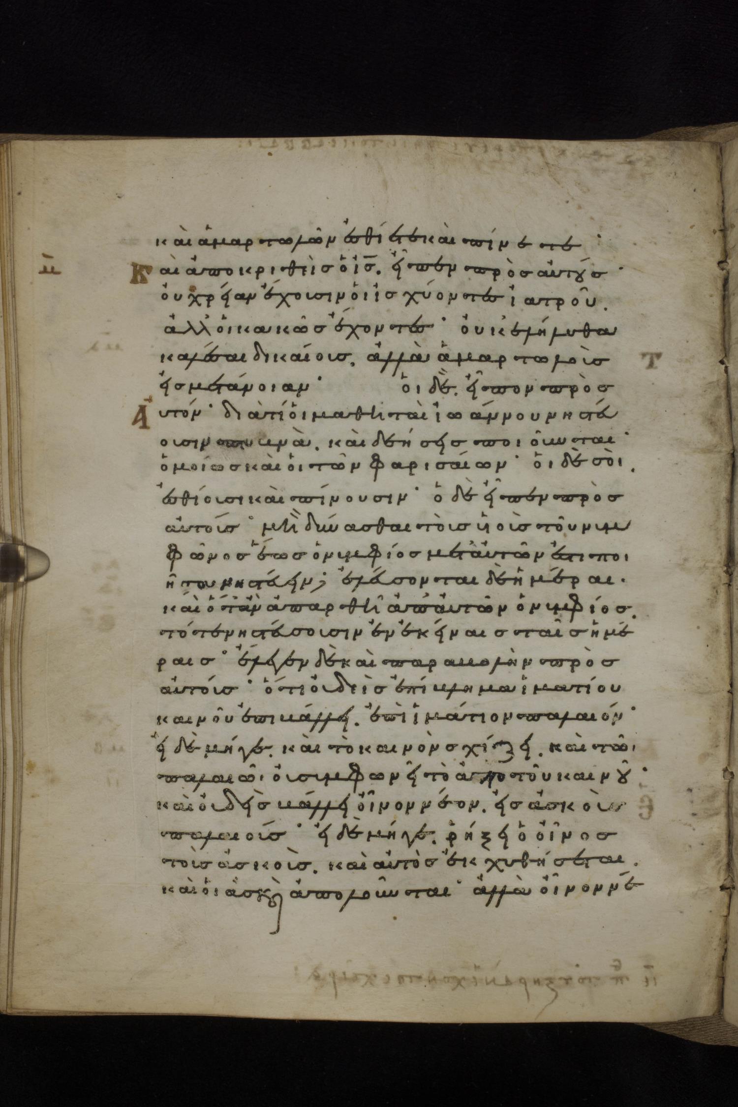 Eleventh century minuscule of the Gospels on parchment; 231 leaves, 1 column, 24 lines per column. Images were taken at the National Library of Greece in Athens.