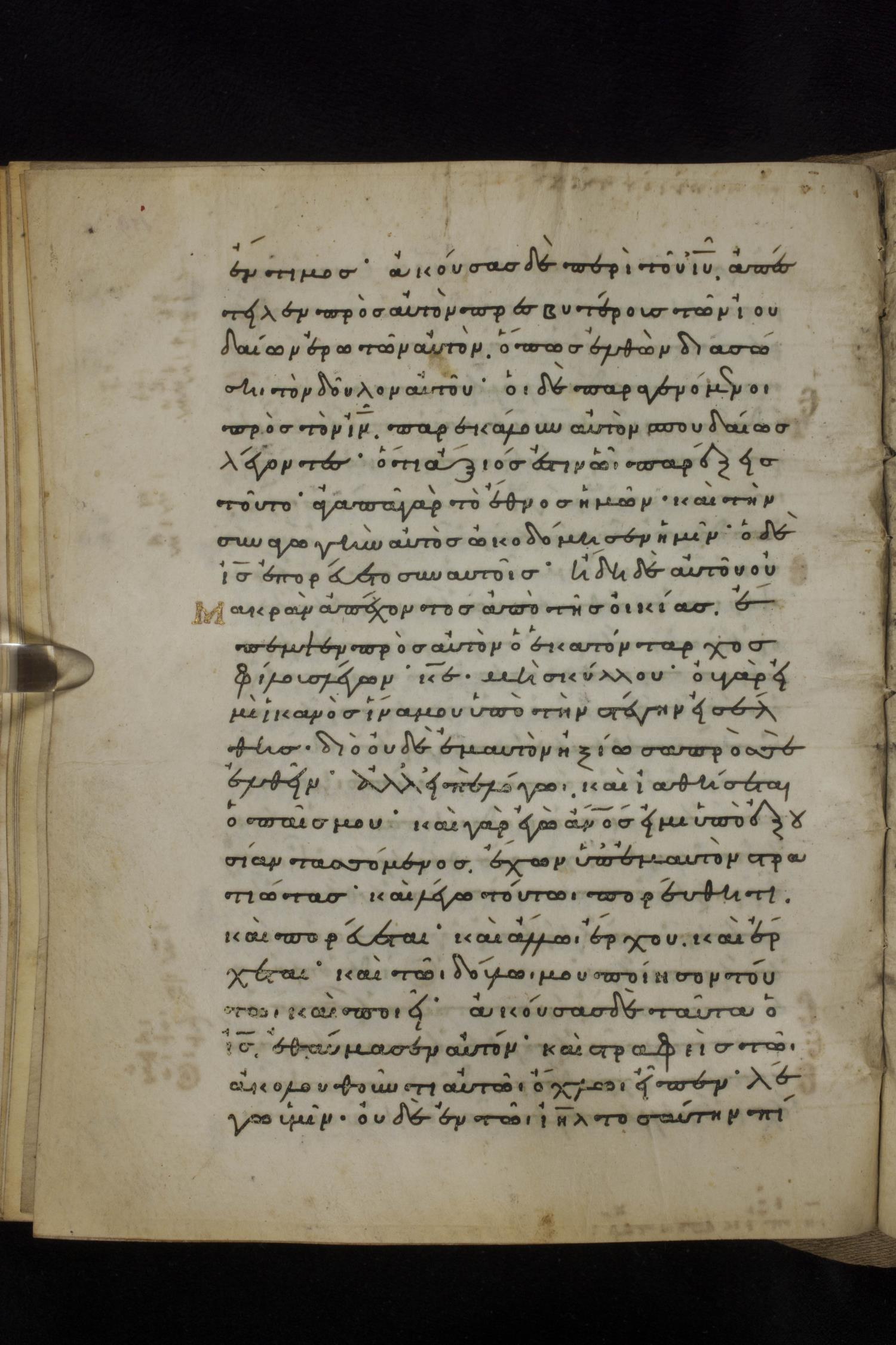 Eleventh century minuscule of the Gospels on parchment; 231 leaves, 1 column, 24 lines per column. Images were taken at the National Library of Greece in Athens.