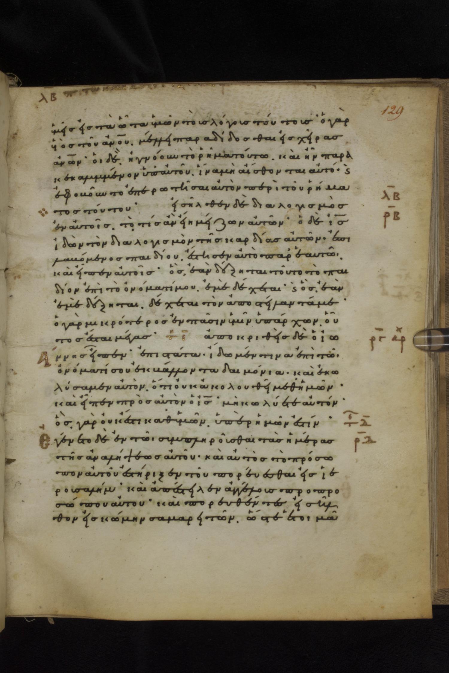 Eleventh century minuscule of the Gospels on parchment; 231 leaves, 1 column, 24 lines per column. Images were taken at the National Library of Greece in Athens.