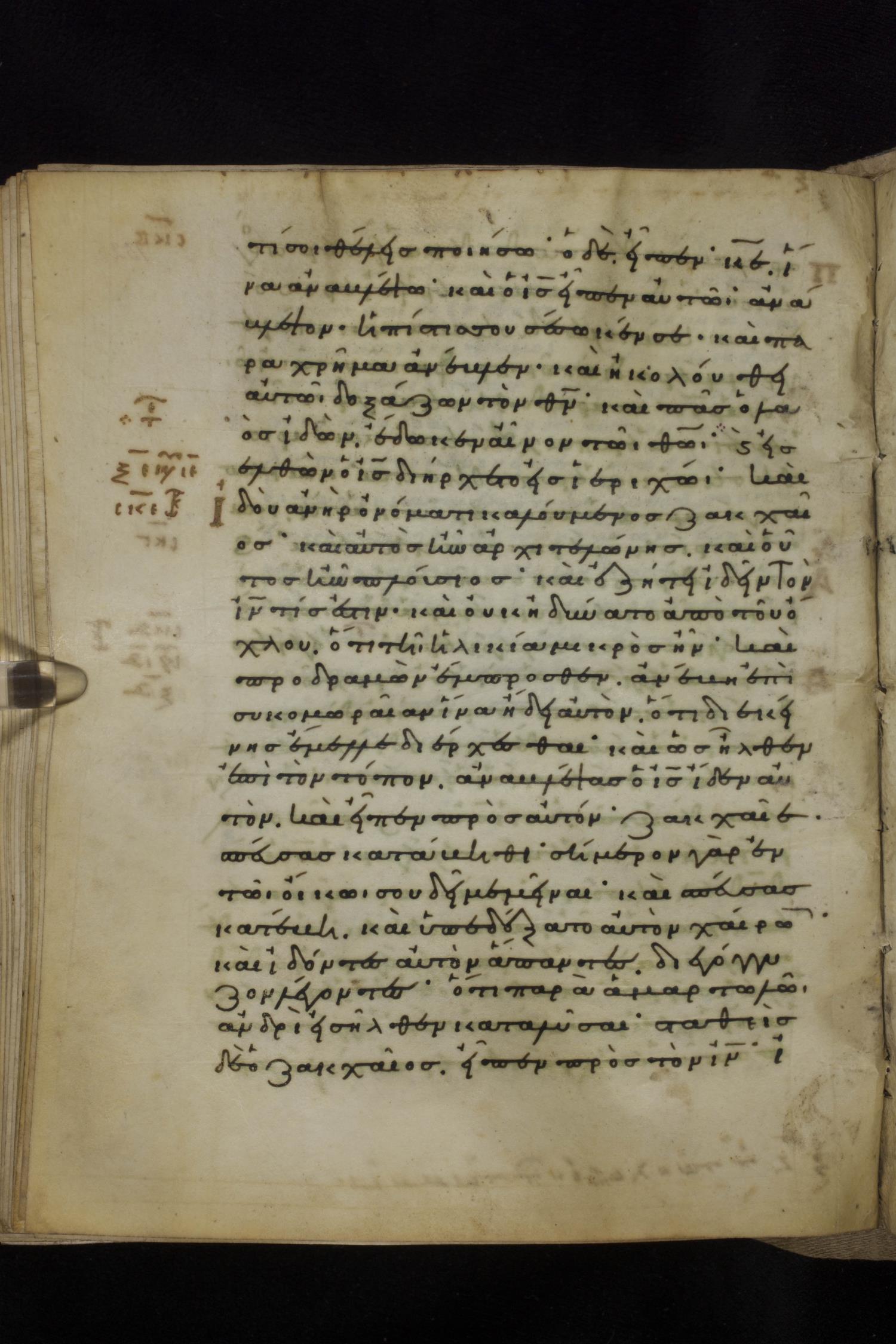 Eleventh century minuscule of the Gospels on parchment; 231 leaves, 1 column, 24 lines per column. Images were taken at the National Library of Greece in Athens.