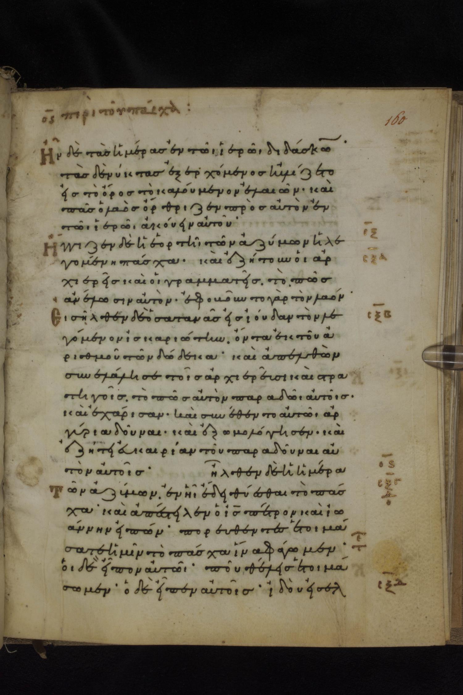 Eleventh century minuscule of the Gospels on parchment; 231 leaves, 1 column, 24 lines per column. Images were taken at the National Library of Greece in Athens.