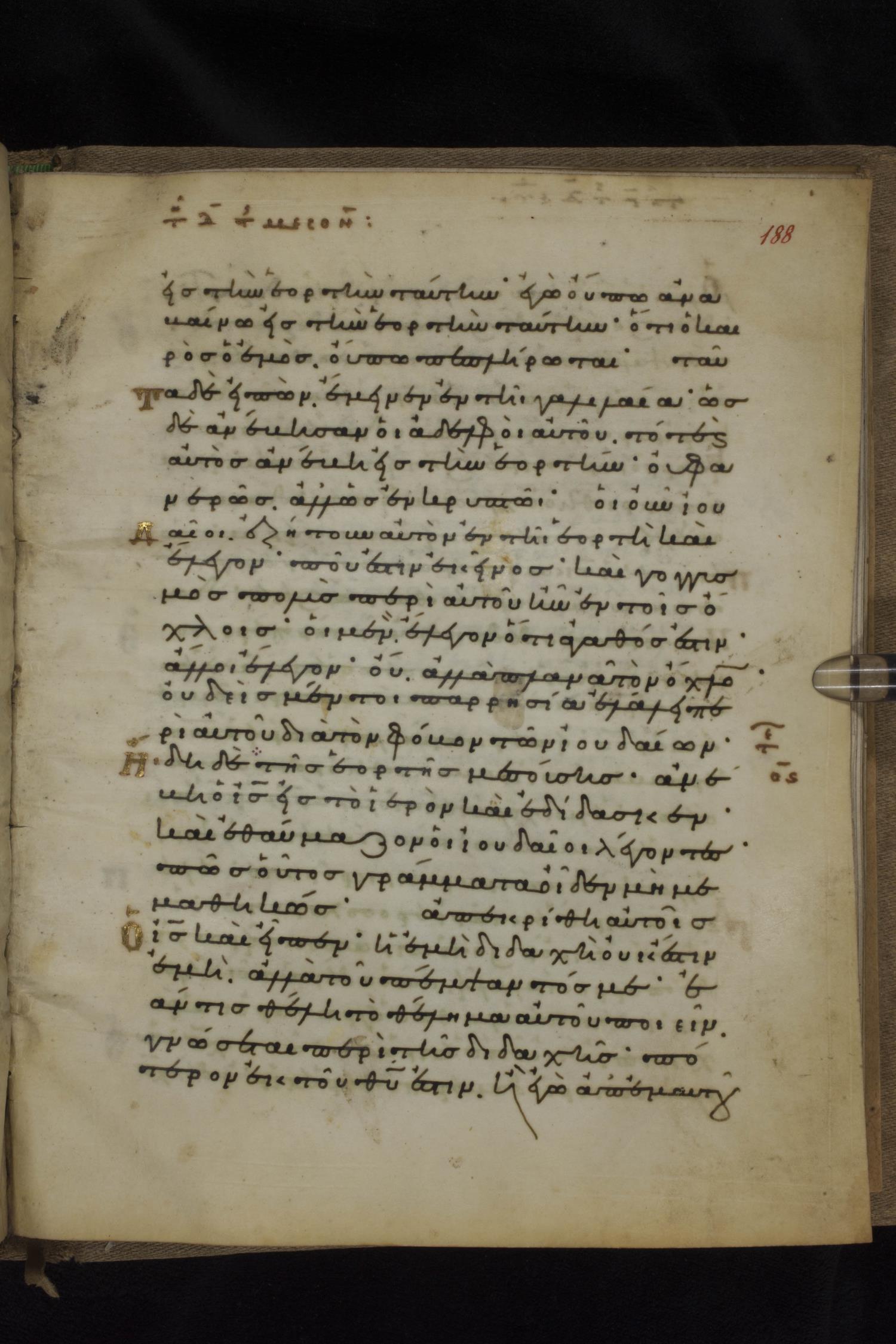 Eleventh century minuscule of the Gospels on parchment; 231 leaves, 1 column, 24 lines per column. Images were taken at the National Library of Greece in Athens.