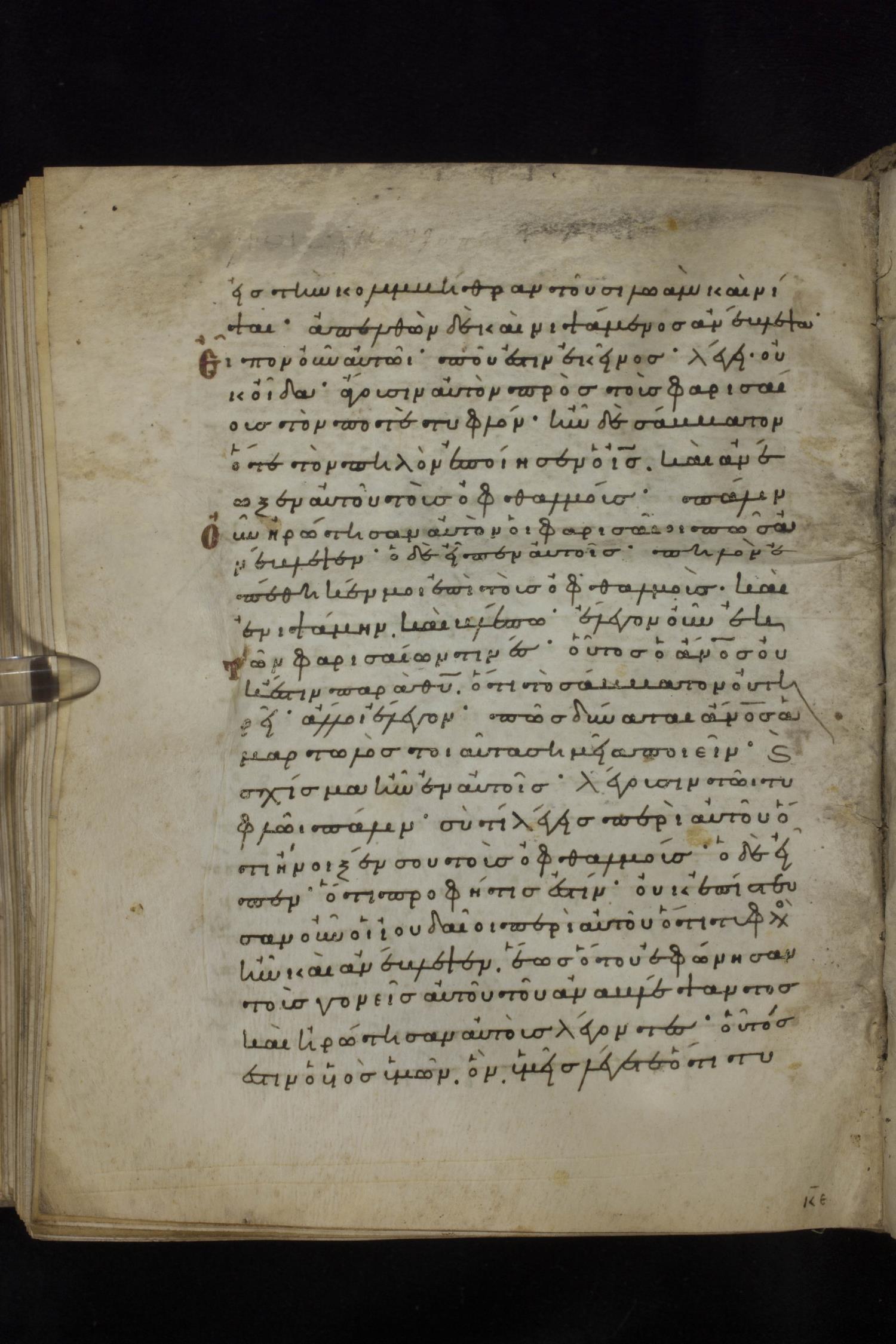 Eleventh century minuscule of the Gospels on parchment; 231 leaves, 1 column, 24 lines per column. Images were taken at the National Library of Greece in Athens.