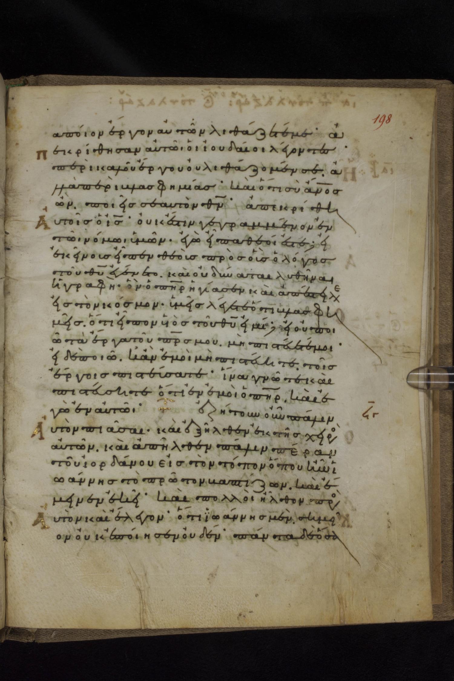 Eleventh century minuscule of the Gospels on parchment; 231 leaves, 1 column, 24 lines per column. Images were taken at the National Library of Greece in Athens.