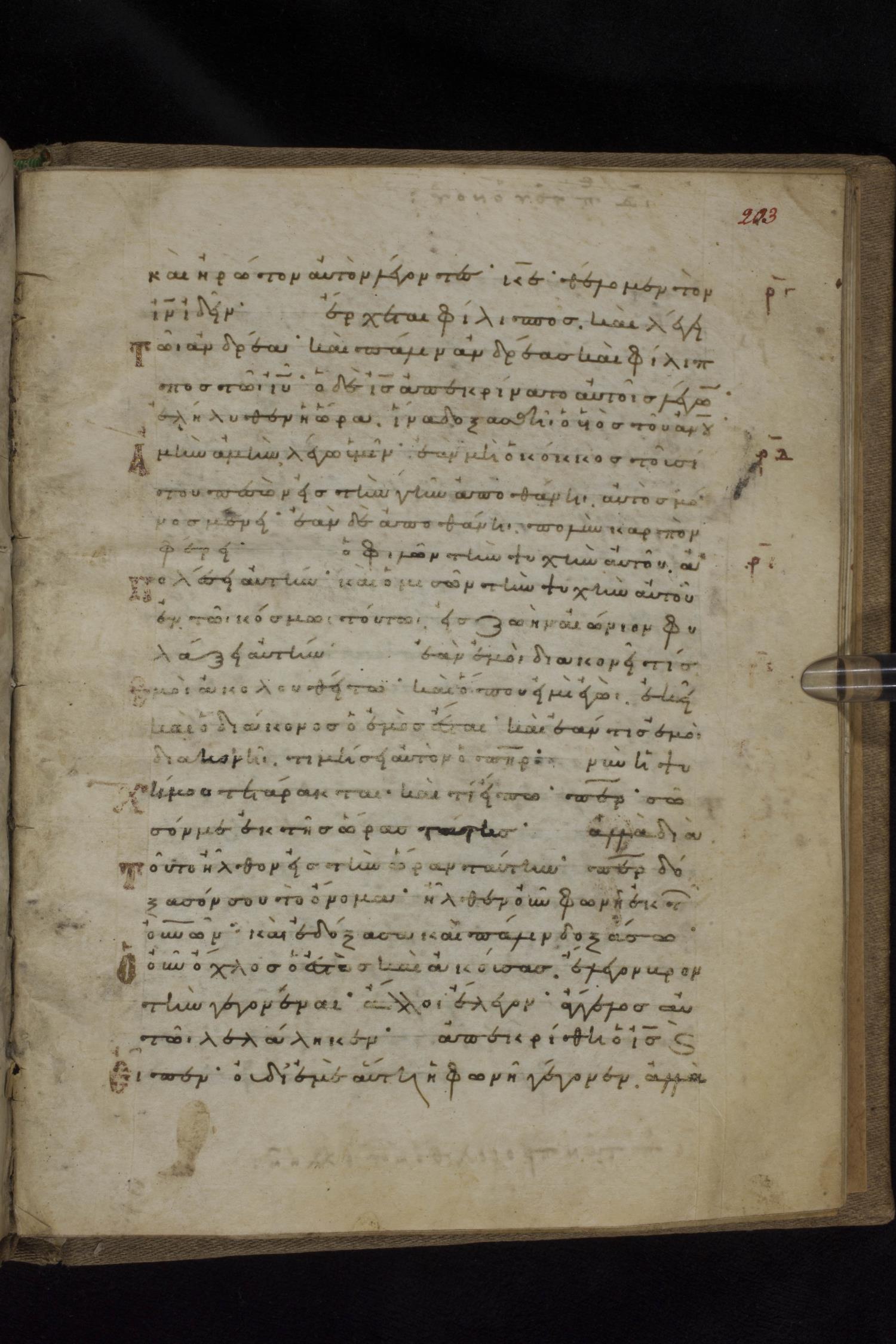 Eleventh century minuscule of the Gospels on parchment; 231 leaves, 1 column, 24 lines per column. Images were taken at the National Library of Greece in Athens.