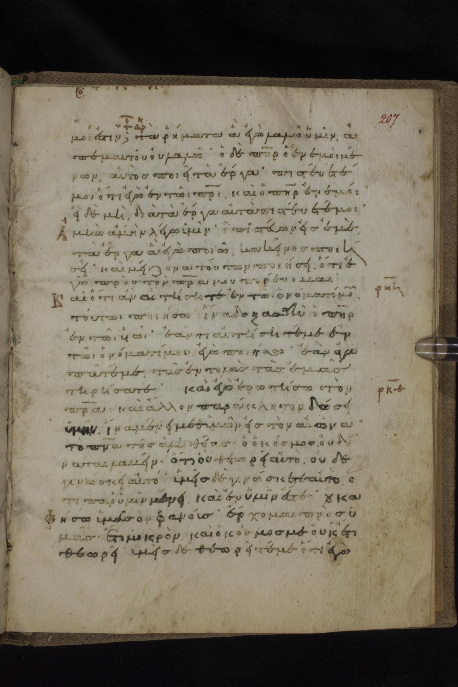 Eleventh century minuscule of the Gospels on parchment; 231 leaves, 1 column, 24 lines per column. Images were taken at the National Library of Greece in Athens.