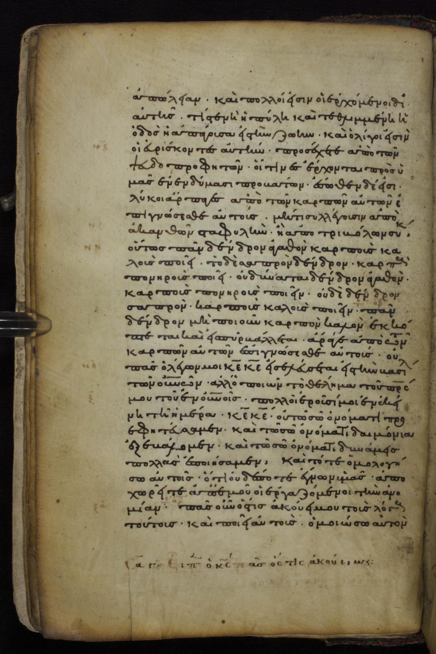 Twelfth century minuscule dated to 1145 of the Gospels on parchment and paper; 189 leaves, 1 column, 22-29 lines per page. Images were taken at the National Library of Greece in Athens.