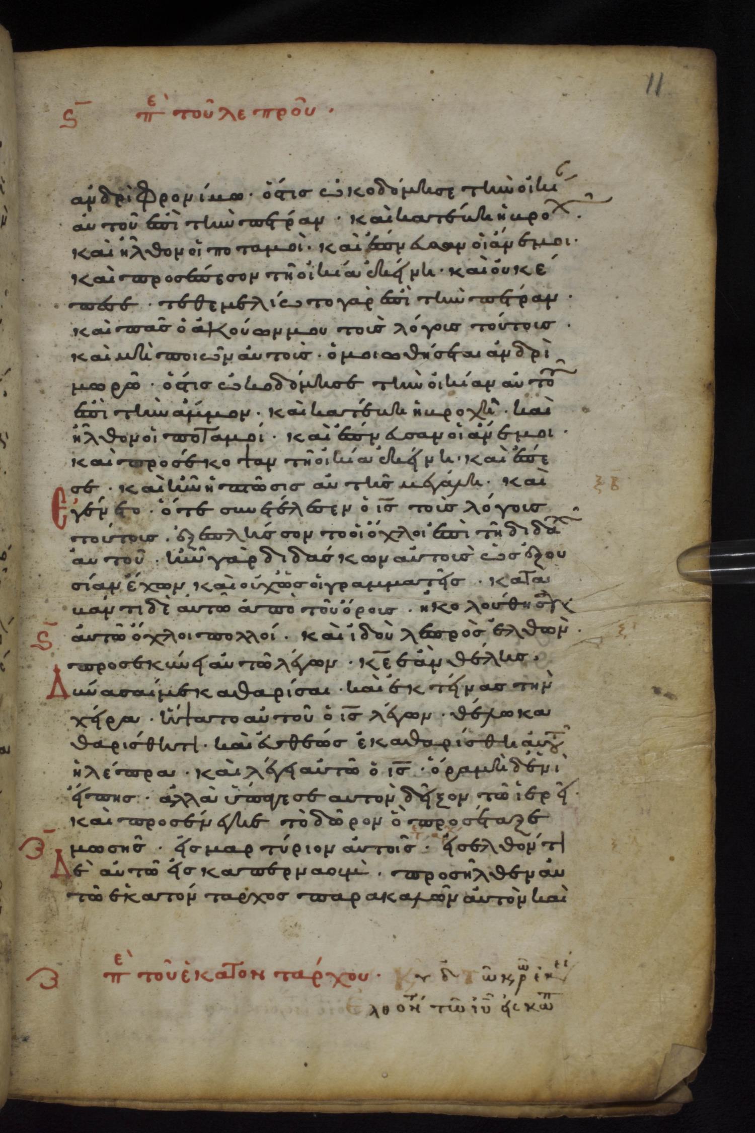 Twelfth century minuscule dated to 1145 of the Gospels on parchment and paper; 189 leaves, 1 column, 22-29 lines per page. Images were taken at the National Library of Greece in Athens.