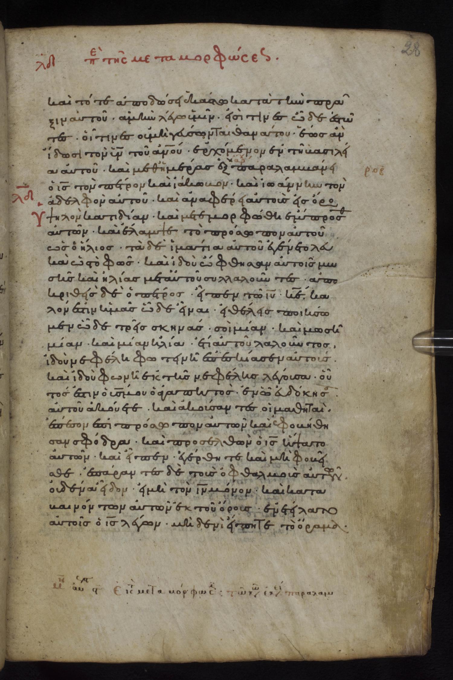 ἀποκριθεὶς δὲ ὁ Πέτρος εἶπεν τῷ Ἰησοῦ Κύριε, καλόν ἐστιν ἡμᾶς ὧδε εἶναι· εἰ θέλεις, ποιήσω ὧδε τρεῖς σκηνάς, σοὶ μίαν καὶ Μωυσεῖ μίαν καὶ Ἠλείᾳ / Ἠλίᾳ μίαν.
