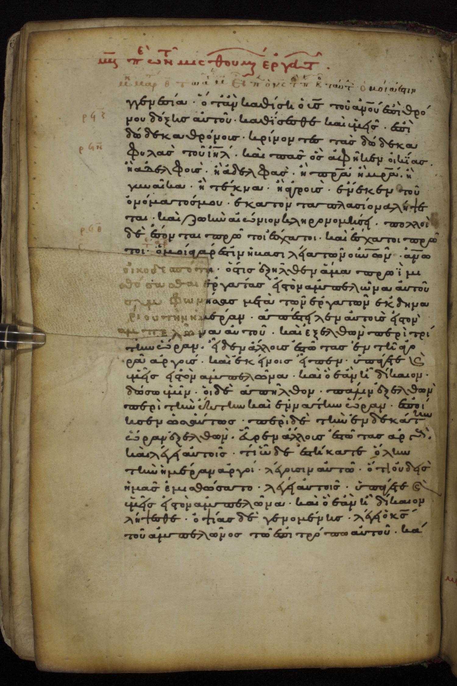 Twelfth century minuscule dated to 1145 of the Gospels on parchment and paper; 189 leaves, 1 column, 22-29 lines per page. Images were taken at the National Library of Greece in Athens.