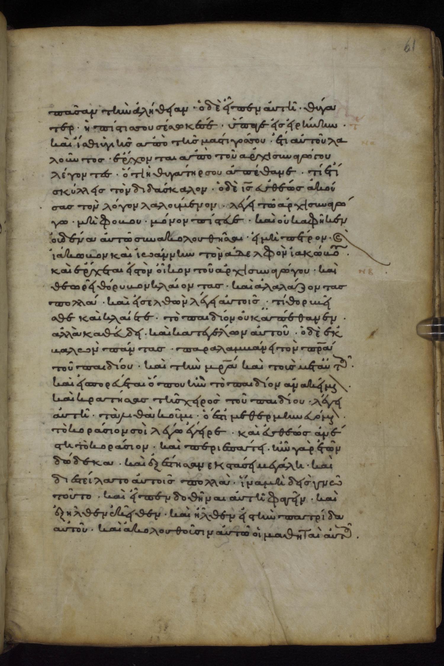 Twelfth century minuscule dated to 1145 of the Gospels on parchment and paper; 189 leaves, 1 column, 22-29 lines per page. Images were taken at the National Library of Greece in Athens.
