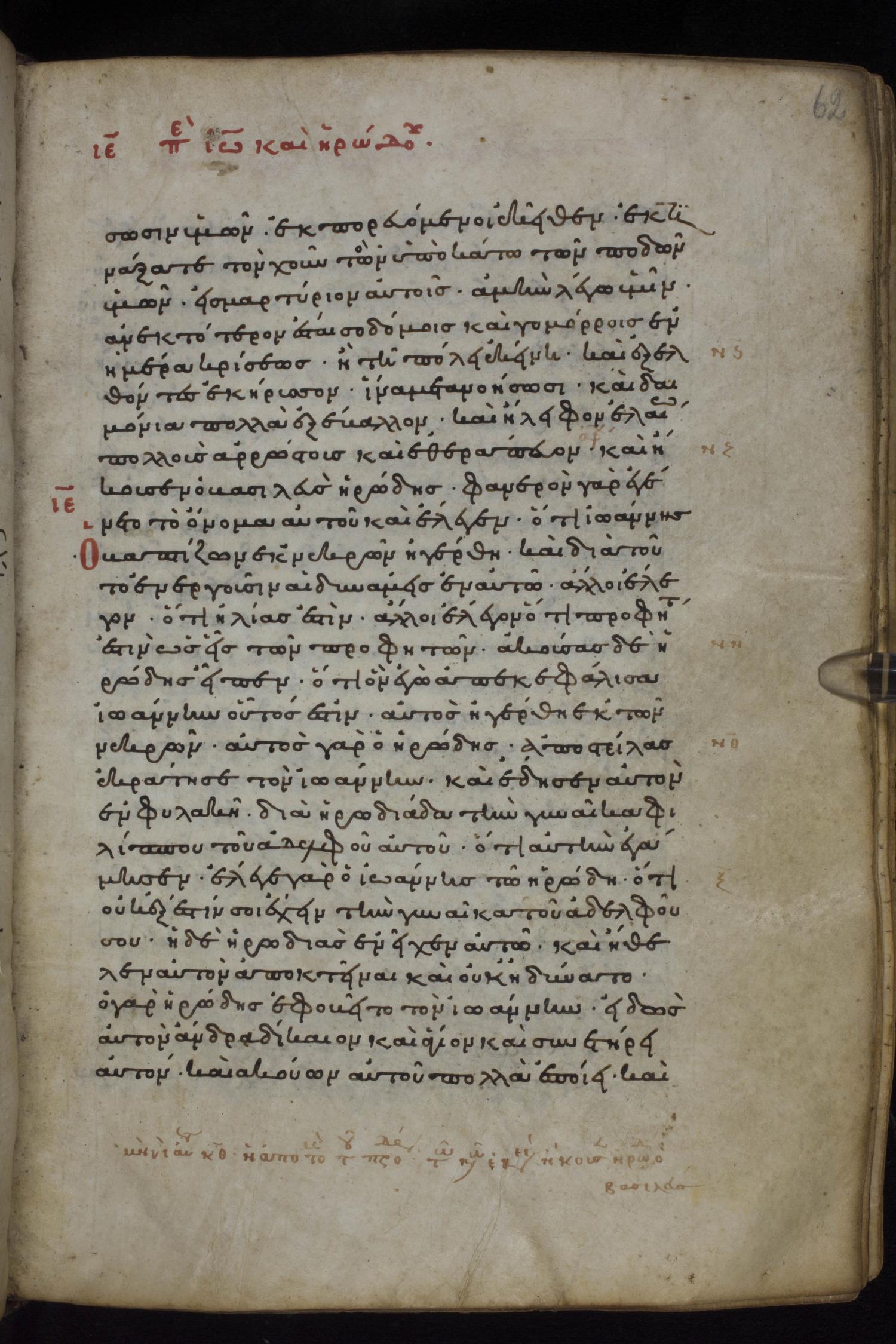 Twelfth century minuscule dated to 1145 of the Gospels on parchment and paper; 189 leaves, 1 column, 22-29 lines per page. Images were taken at the National Library of Greece in Athens.