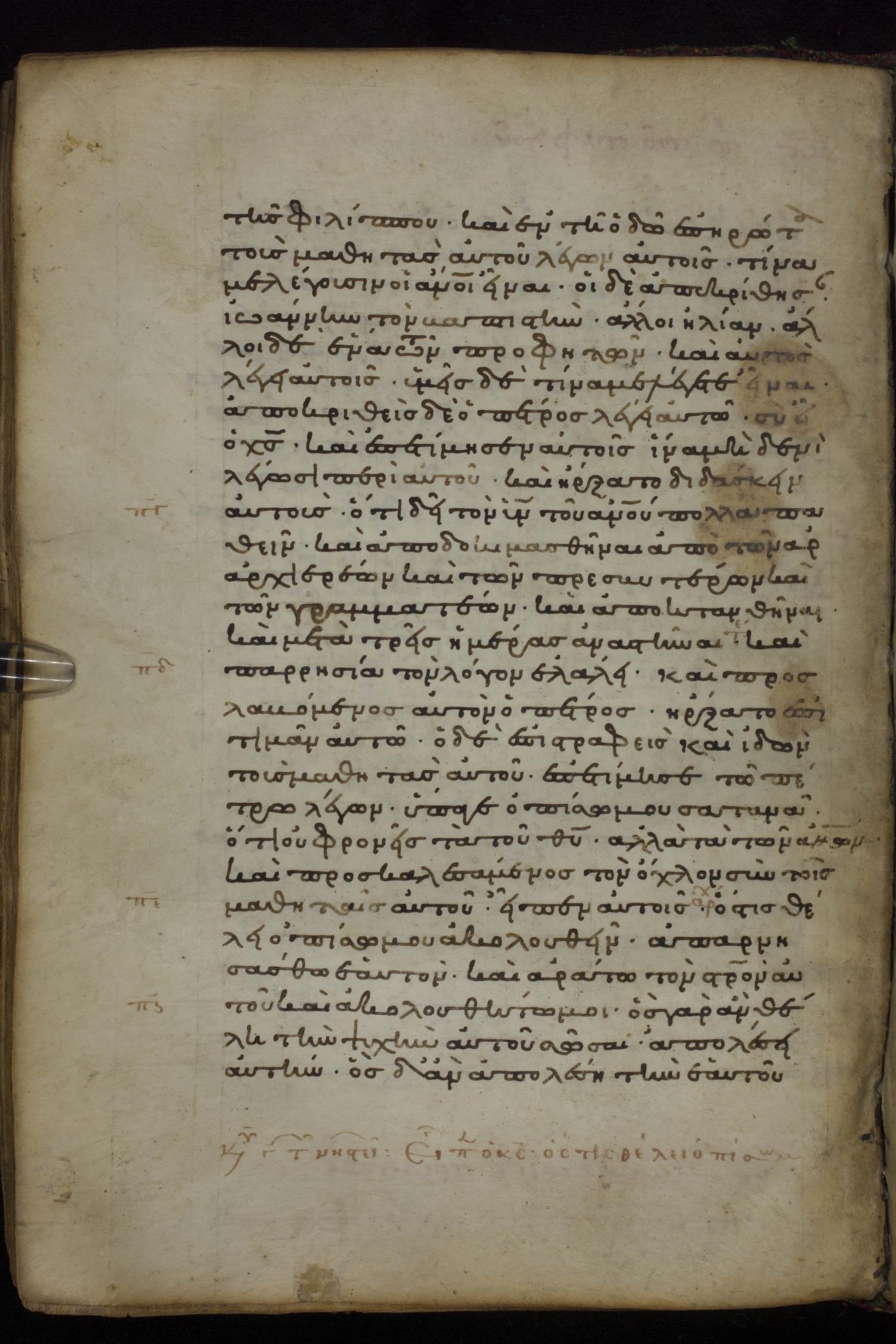 Twelfth century minuscule dated to 1145 of the Gospels on parchment and paper; 189 leaves, 1 column, 22-29 lines per page. Images were taken at the National Library of Greece in Athens.