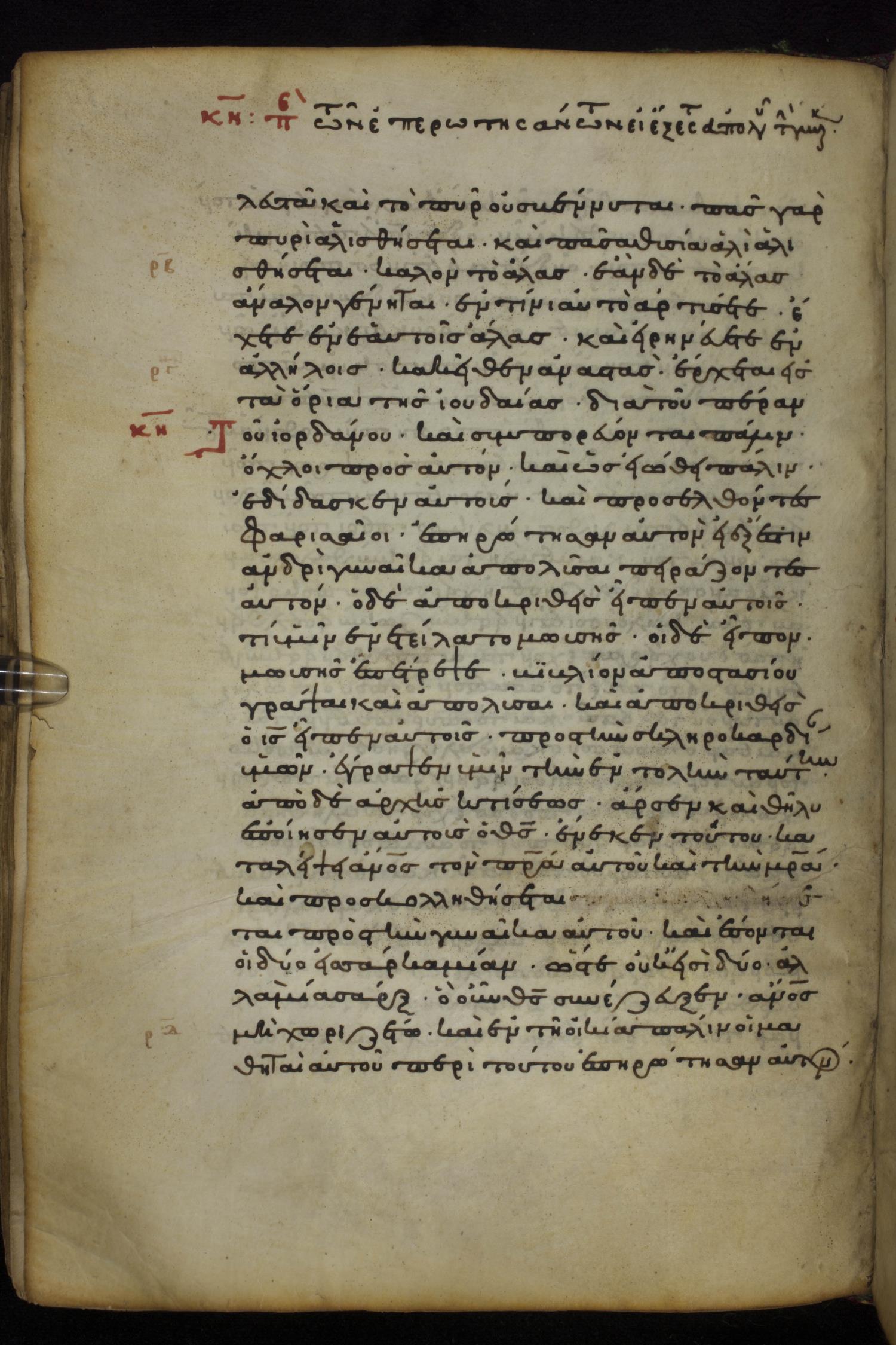 Twelfth century minuscule dated to 1145 of the Gospels on parchment and paper; 189 leaves, 1 column, 22-29 lines per page. Images were taken at the National Library of Greece in Athens.