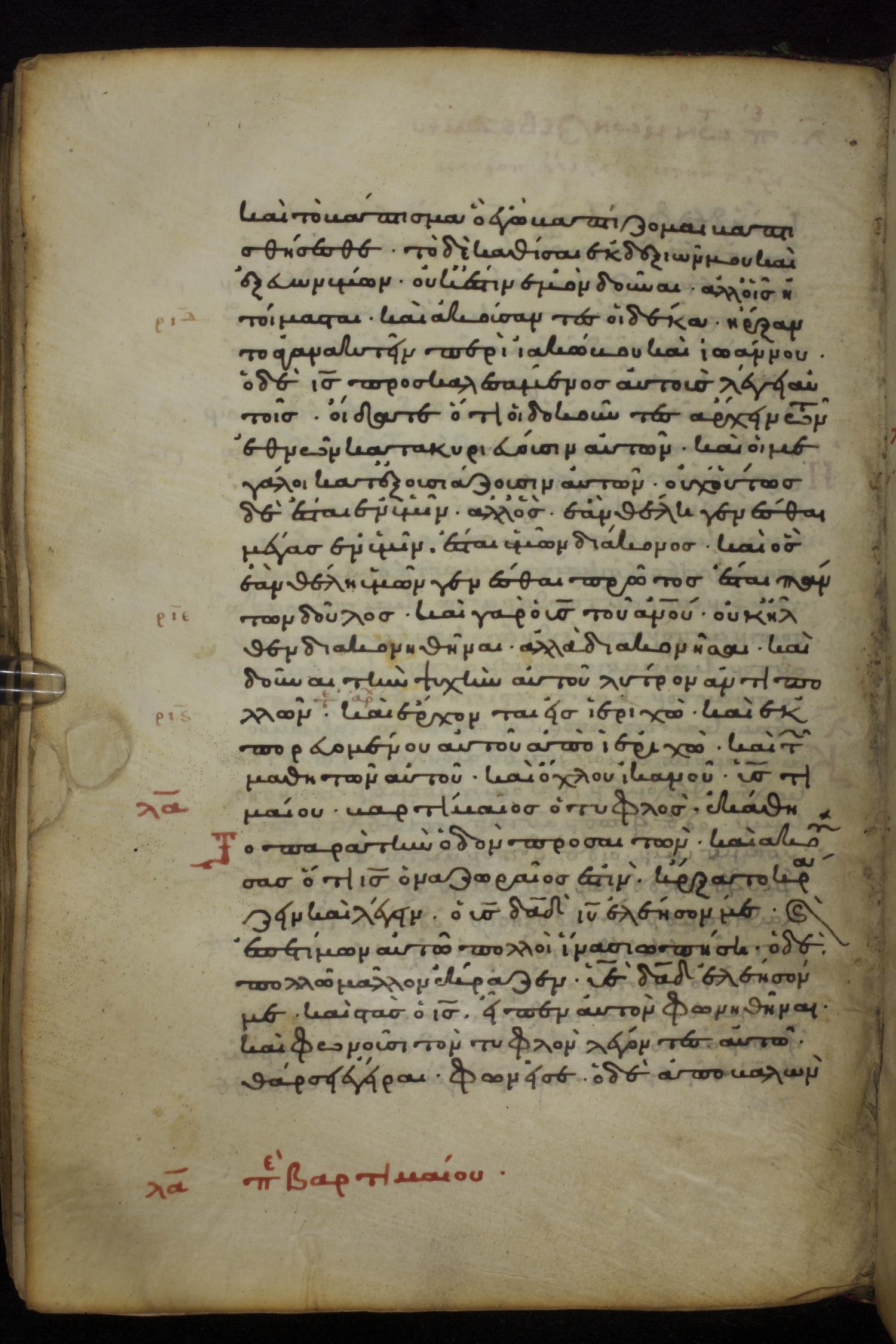 Twelfth century minuscule dated to 1145 of the Gospels on parchment and paper; 189 leaves, 1 column, 22-29 lines per page. Images were taken at the National Library of Greece in Athens.