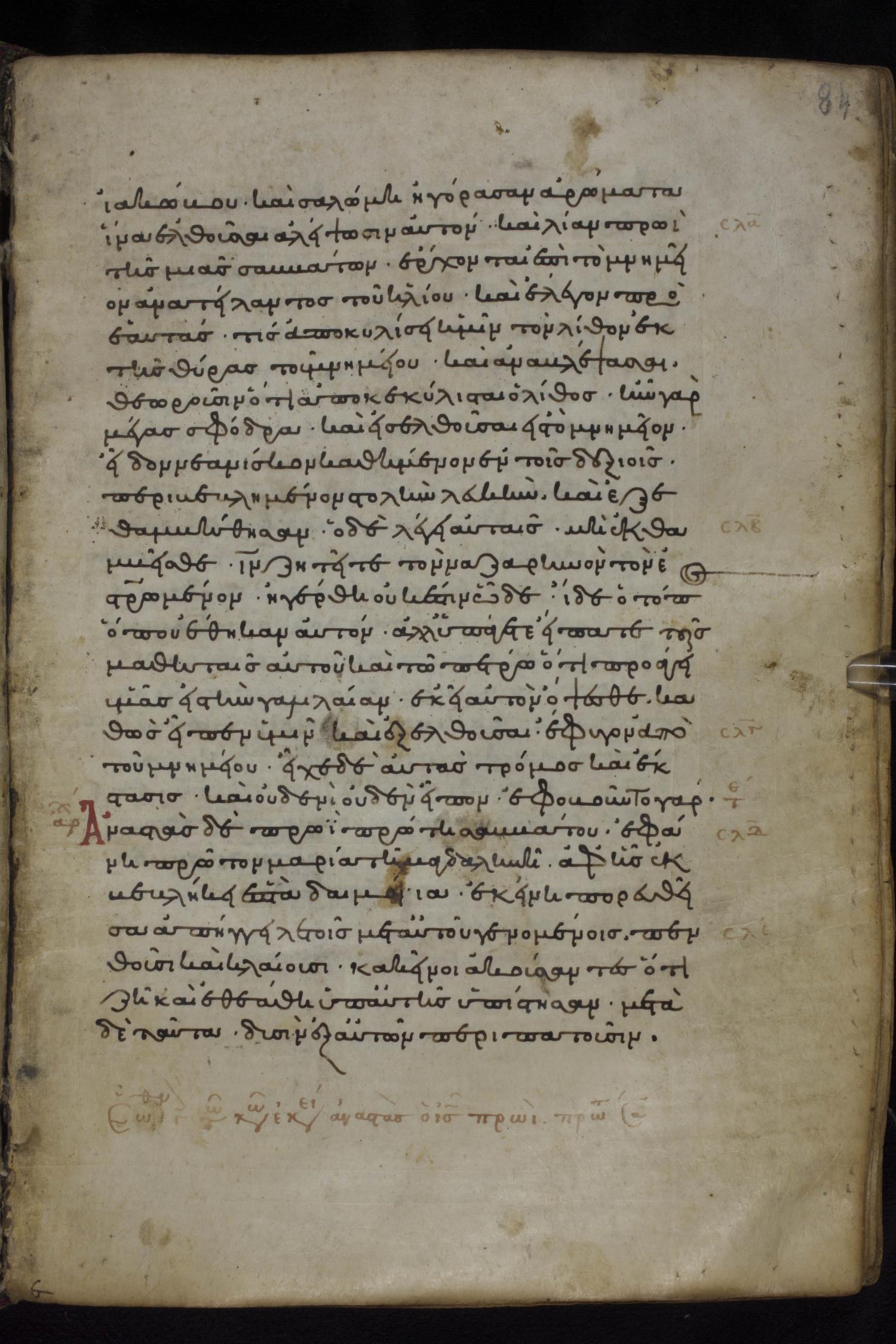 Twelfth century minuscule dated to 1145 of the Gospels on parchment and paper; 189 leaves, 1 column, 22-29 lines per page. Images were taken at the National Library of Greece in Athens.