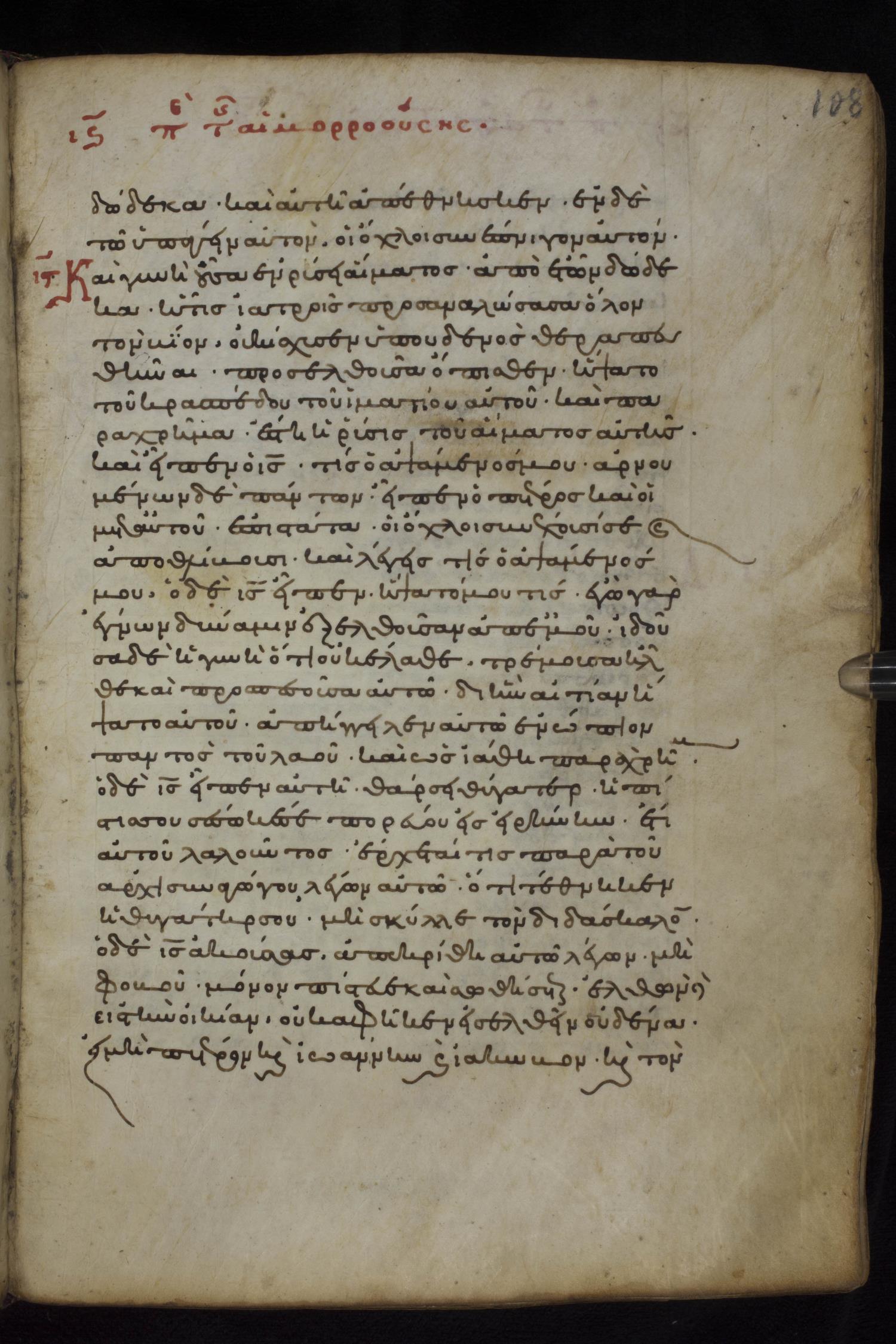 Twelfth century minuscule dated to 1145 of the Gospels on parchment and paper; 189 leaves, 1 column, 22-29 lines per page. Images were taken at the National Library of Greece in Athens.