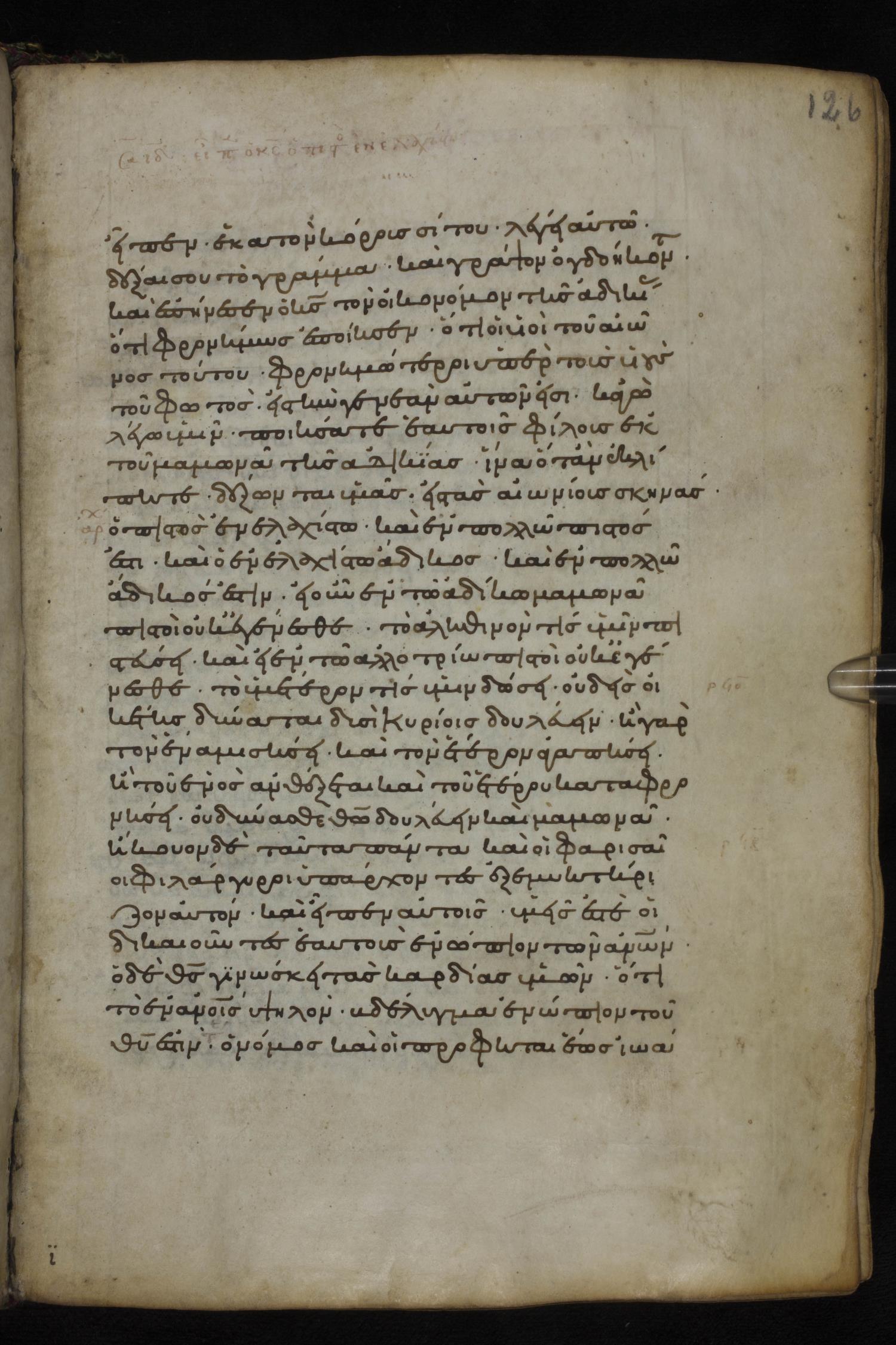 Twelfth century minuscule dated to 1145 of the Gospels on parchment and paper; 189 leaves, 1 column, 22-29 lines per page. Images were taken at the National Library of Greece in Athens.