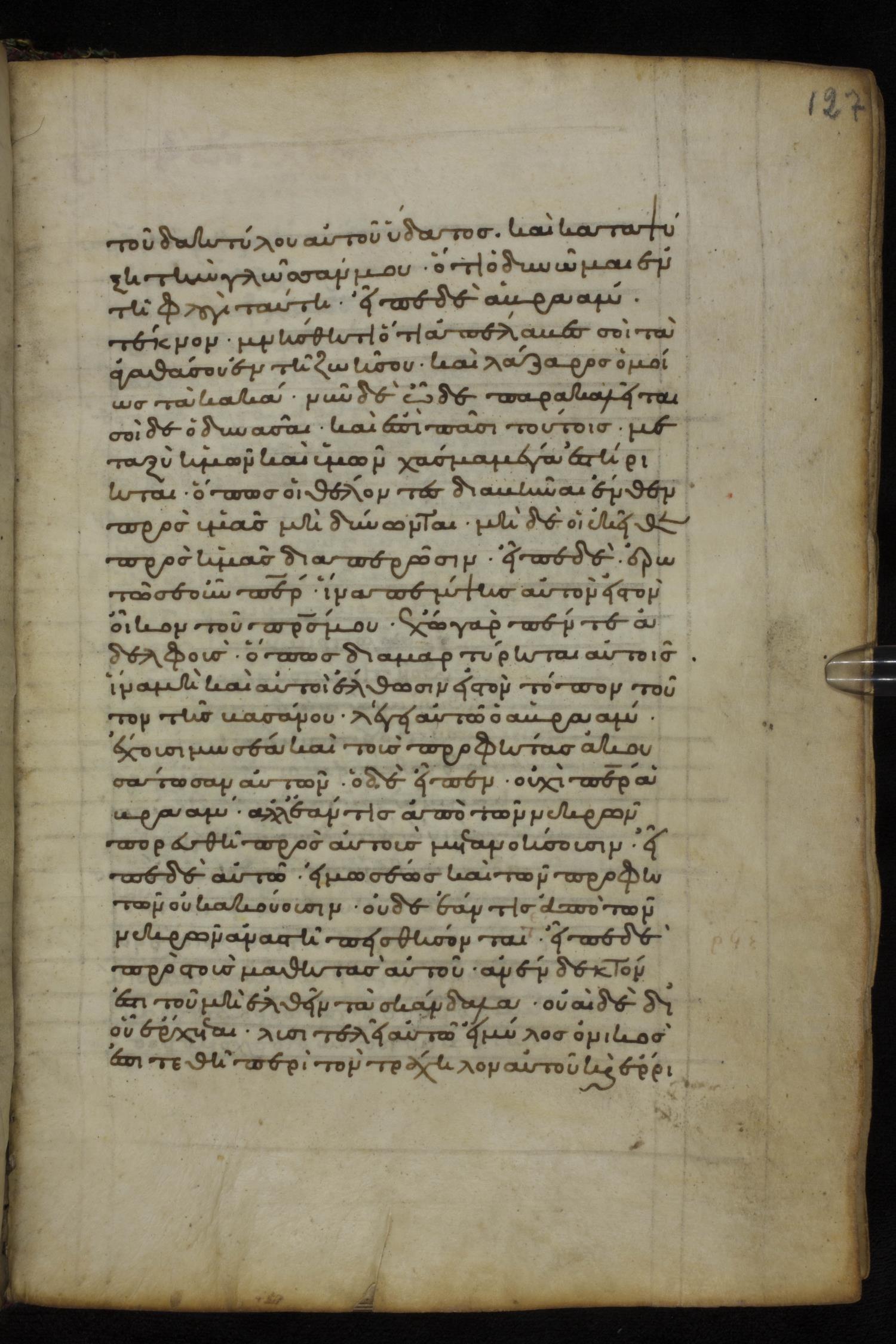 Twelfth century minuscule dated to 1145 of the Gospels on parchment and paper; 189 leaves, 1 column, 22-29 lines per page. Images were taken at the National Library of Greece in Athens.