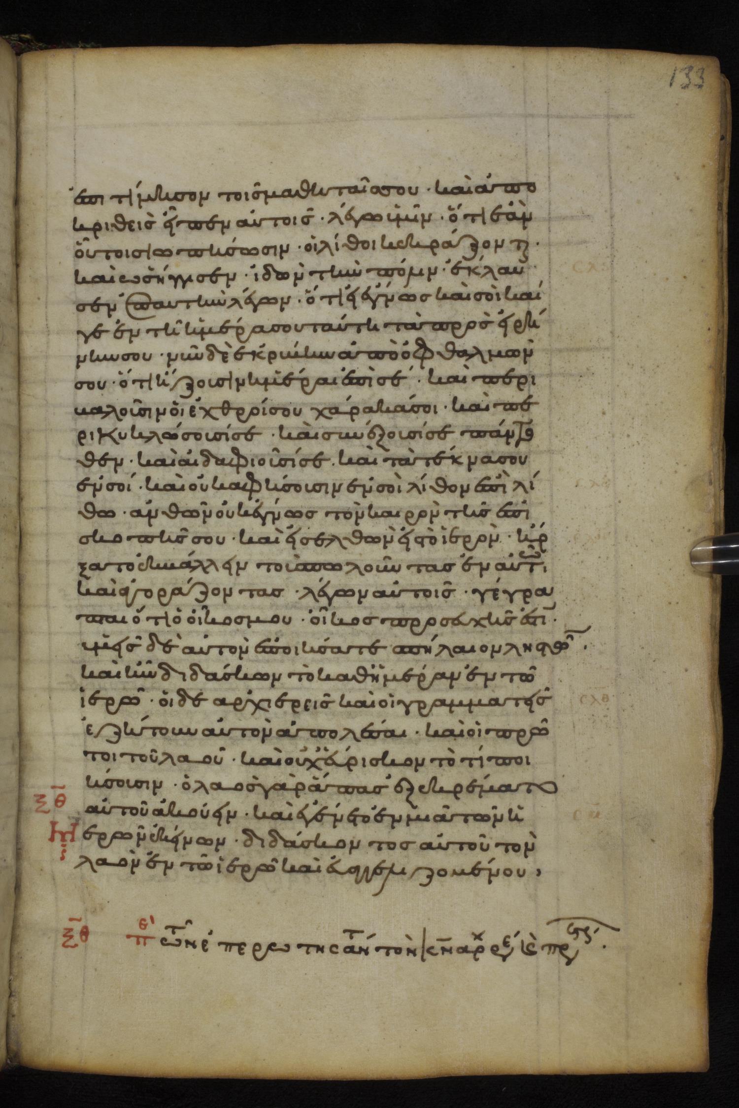 Twelfth century minuscule dated to 1145 of the Gospels on parchment and paper; 189 leaves, 1 column, 22-29 lines per page. Images were taken at the National Library of Greece in Athens.