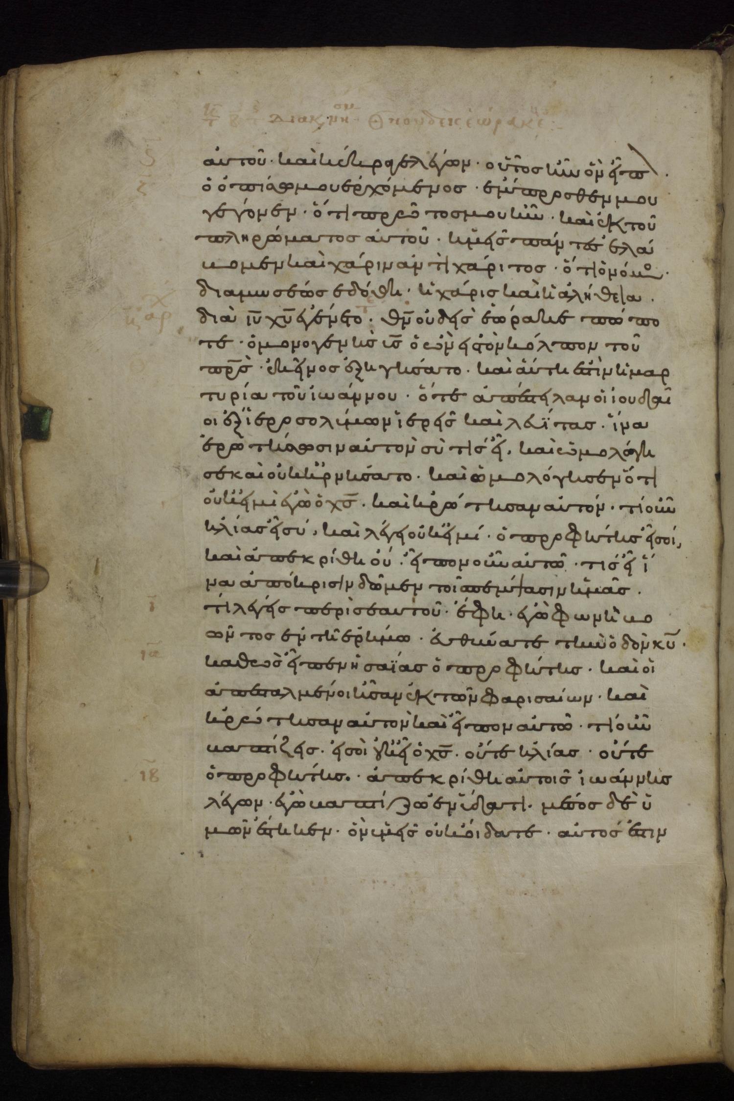 Twelfth century minuscule dated to 1145 of the Gospels on parchment and paper; 189 leaves, 1 column, 22-29 lines per page. Images were taken at the National Library of Greece in Athens.