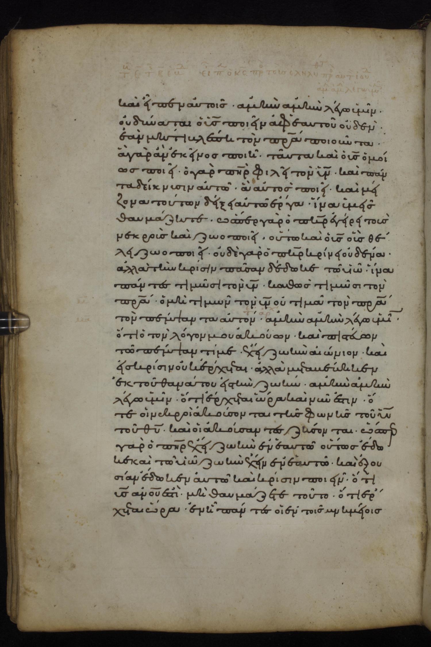 Ἀμὴν ἀμὴν λέγω ὑμῖν ὅτι ὁ τὸν λόγον μου ἀκούων καὶ πιστεύων τῷ πέμψαντί με ἔχει ζωὴν αἰώνιον, καὶ εἰς κρίσιν οὐκ ἔρχεται ἀλλὰ μεταβέβηκεν ἐκ τοῦ θανάτου εἰς τὴν ζωήν.