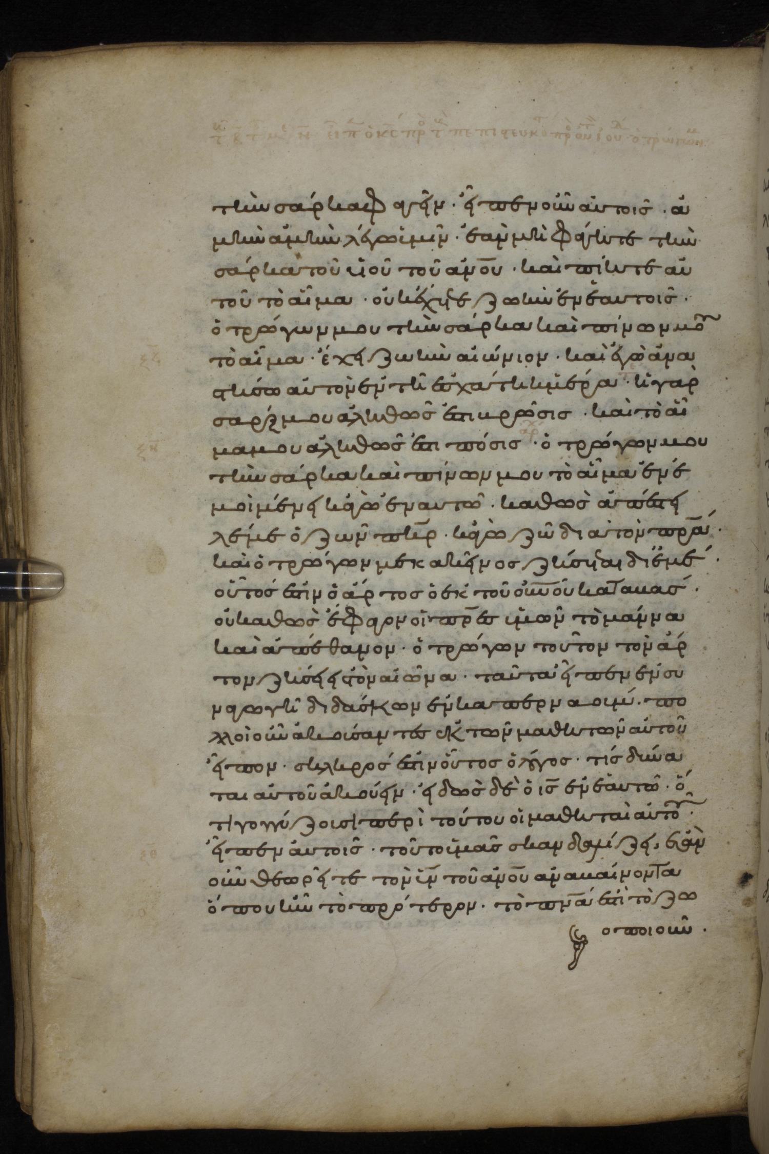 ὁ τρώγων μου τὴν σάρκα καὶ πίνων μου τὸ αἷμα ἐν ἐμοὶ μένει κἀγὼ ἐν αὐτῷ.