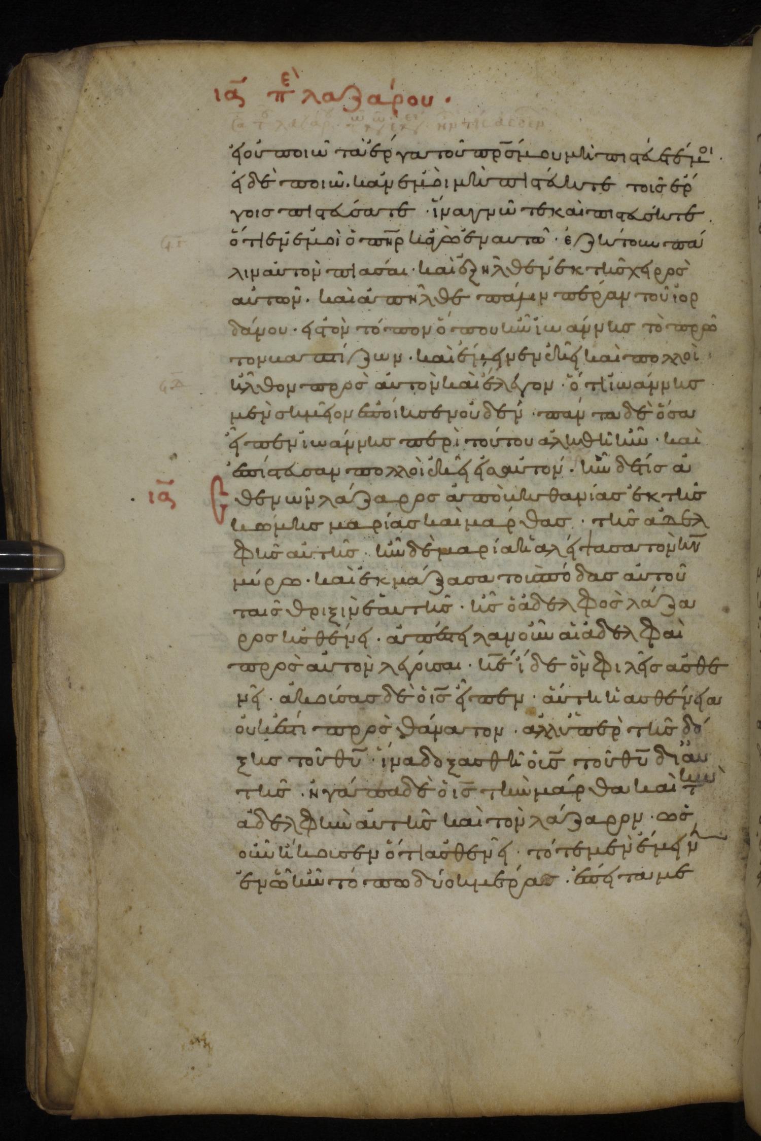 Ἦν δέ τις ἀσθενῶν, Λάζαρος ἀπὸ Βηθανίας ἐκ τῆς κώμης Μαρίας καὶ Μάρθας τῆς ἀδελφῆς αὐτῆς.