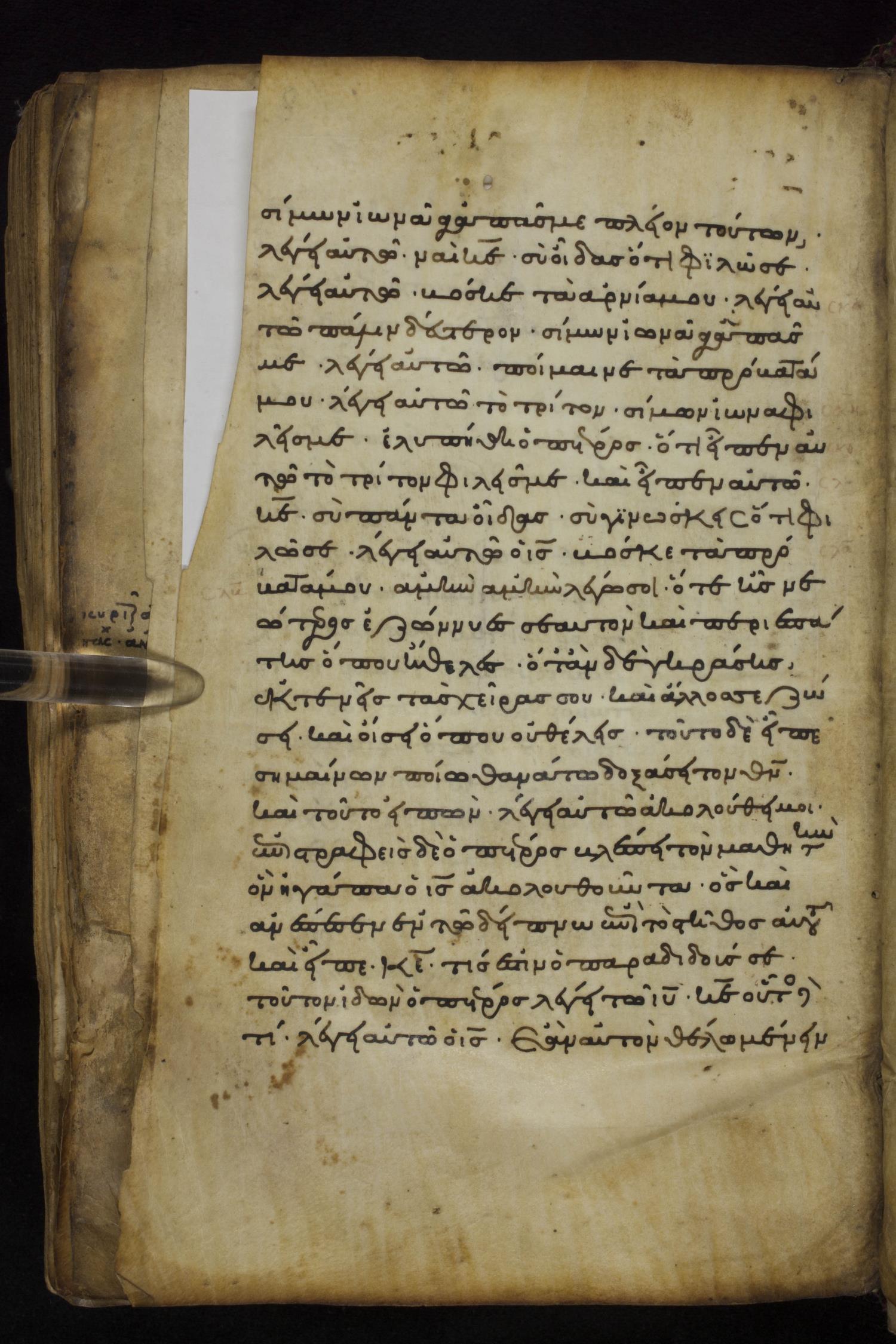 Twelfth century minuscule dated to 1145 of the Gospels on parchment and paper; 189 leaves, 1 column, 22-29 lines per page. Images were taken at the National Library of Greece in Athens.