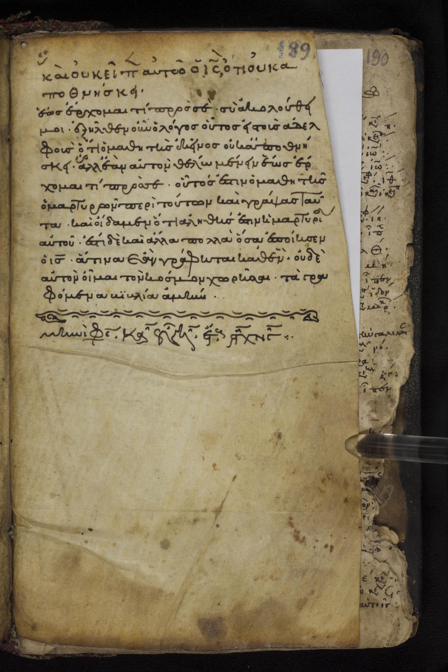 Twelfth century minuscule dated to 1145 of the Gospels on parchment and paper; 189 leaves, 1 column, 22-29 lines per page. Images were taken at the National Library of Greece in Athens.