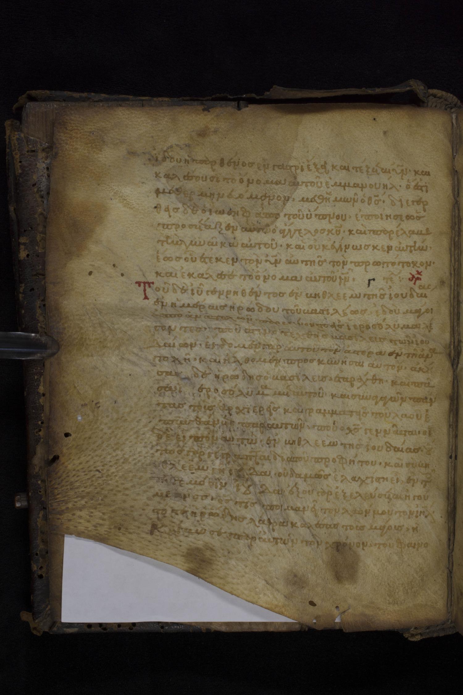 Twelfth century minuscule of the Gospels on parchment; 181 leaves, 1 column, 23-24 lines per column. Images were taken at the National Library of Greece in Athens.