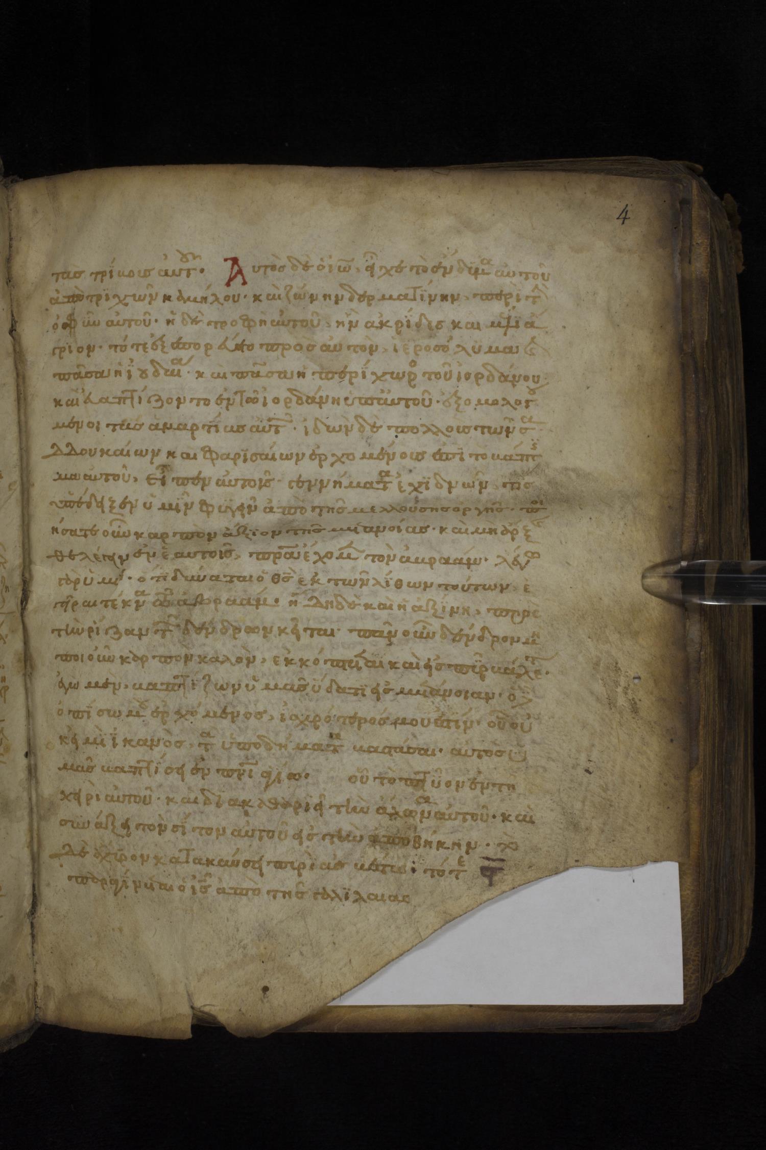 Twelfth century minuscule of the Gospels on parchment; 181 leaves, 1 column, 23-24 lines per column. Images were taken at the National Library of Greece in Athens.