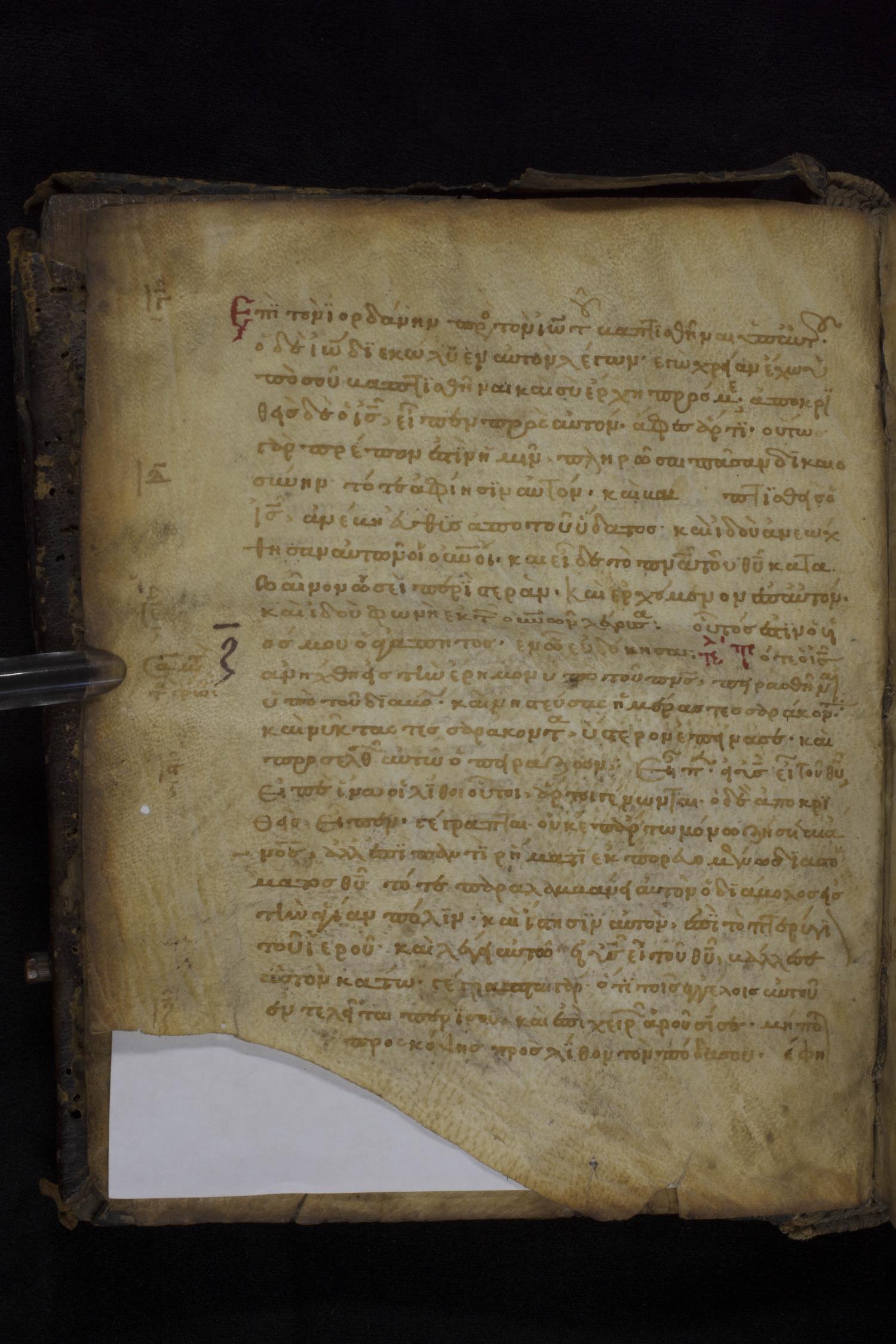 Twelfth century minuscule of the Gospels on parchment; 181 leaves, 1 column, 23-24 lines per column. Images were taken at the National Library of Greece in Athens.