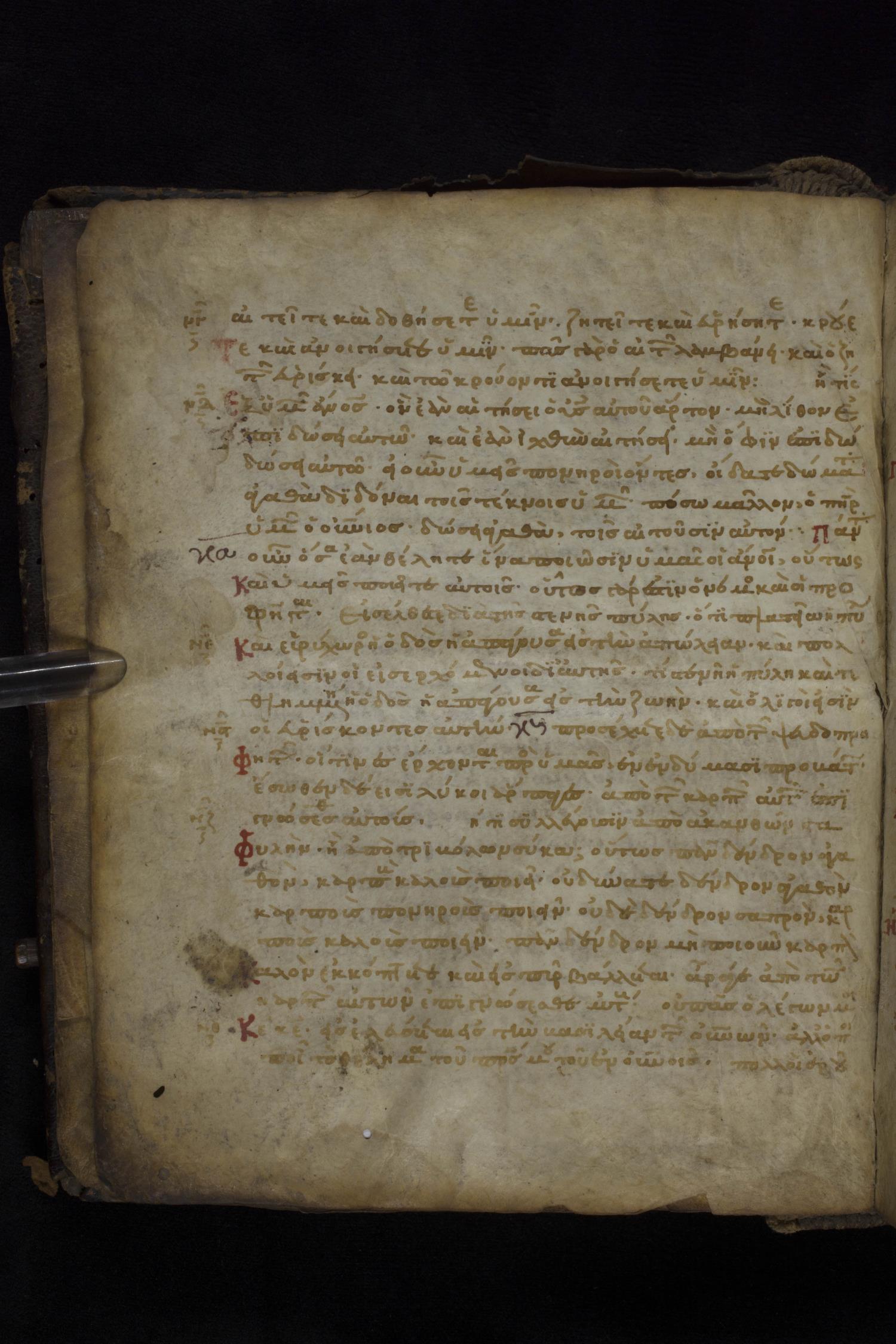 Twelfth century minuscule of the Gospels on parchment; 181 leaves, 1 column, 23-24 lines per column. Images were taken at the National Library of Greece in Athens.