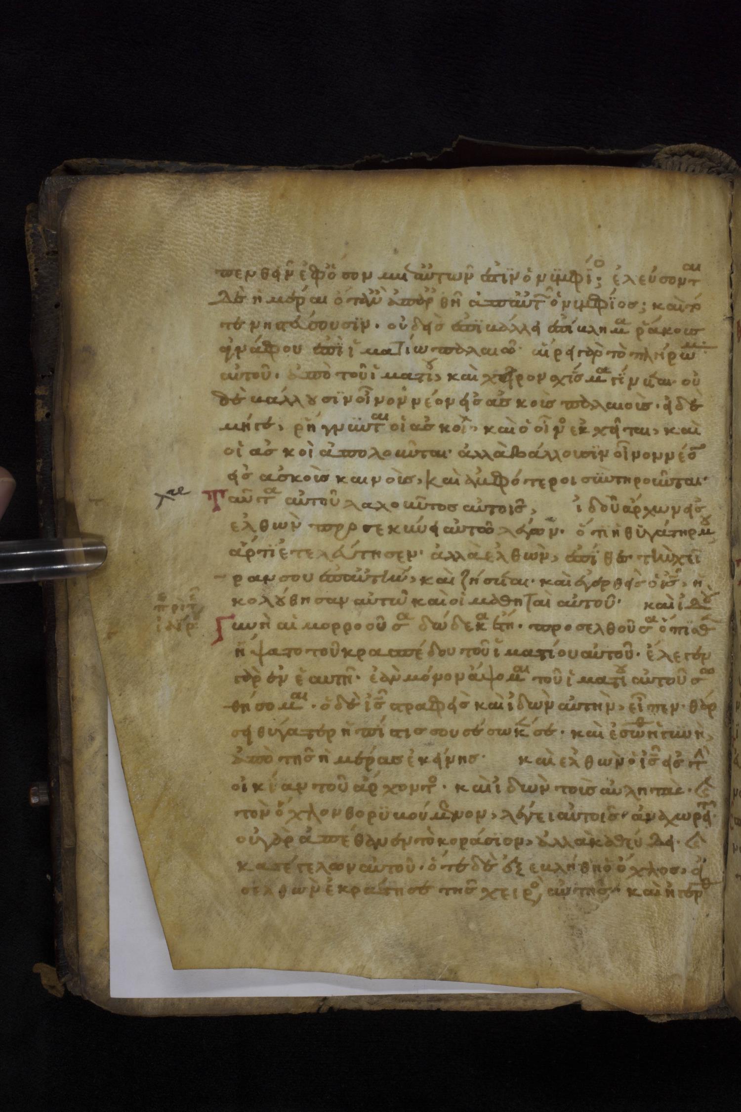 Twelfth century minuscule of the Gospels on parchment; 181 leaves, 1 column, 23-24 lines per column. Images were taken at the National Library of Greece in Athens.