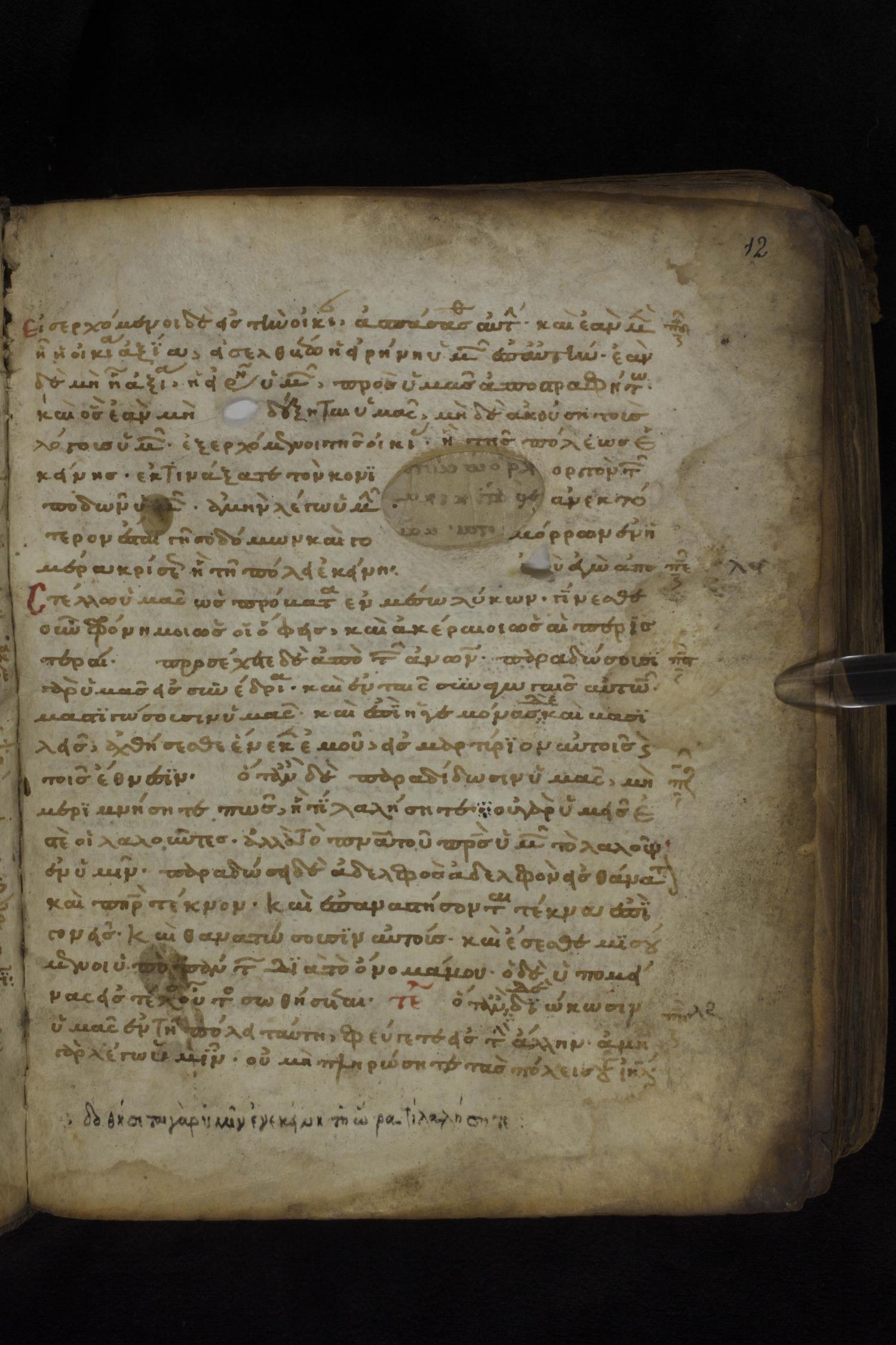 Twelfth century minuscule of the Gospels on parchment; 181 leaves, 1 column, 23-24 lines per column. Images were taken at the National Library of Greece in Athens.