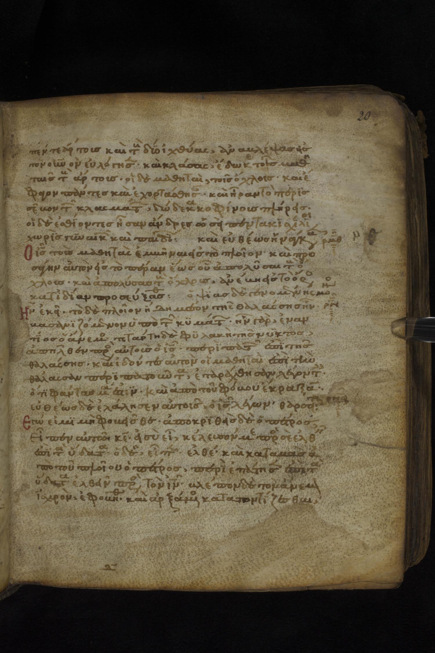 Twelfth century minuscule of the Gospels on parchment; 181 leaves, 1 column, 23-24 lines per column. Images were taken at the National Library of Greece in Athens.