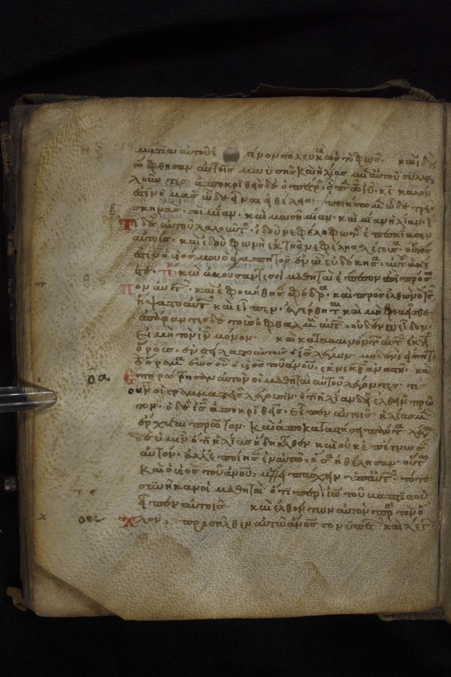 Twelfth century minuscule of the Gospels on parchment; 181 leaves, 1 column, 23-24 lines per column. Images were taken at the National Library of Greece in Athens.