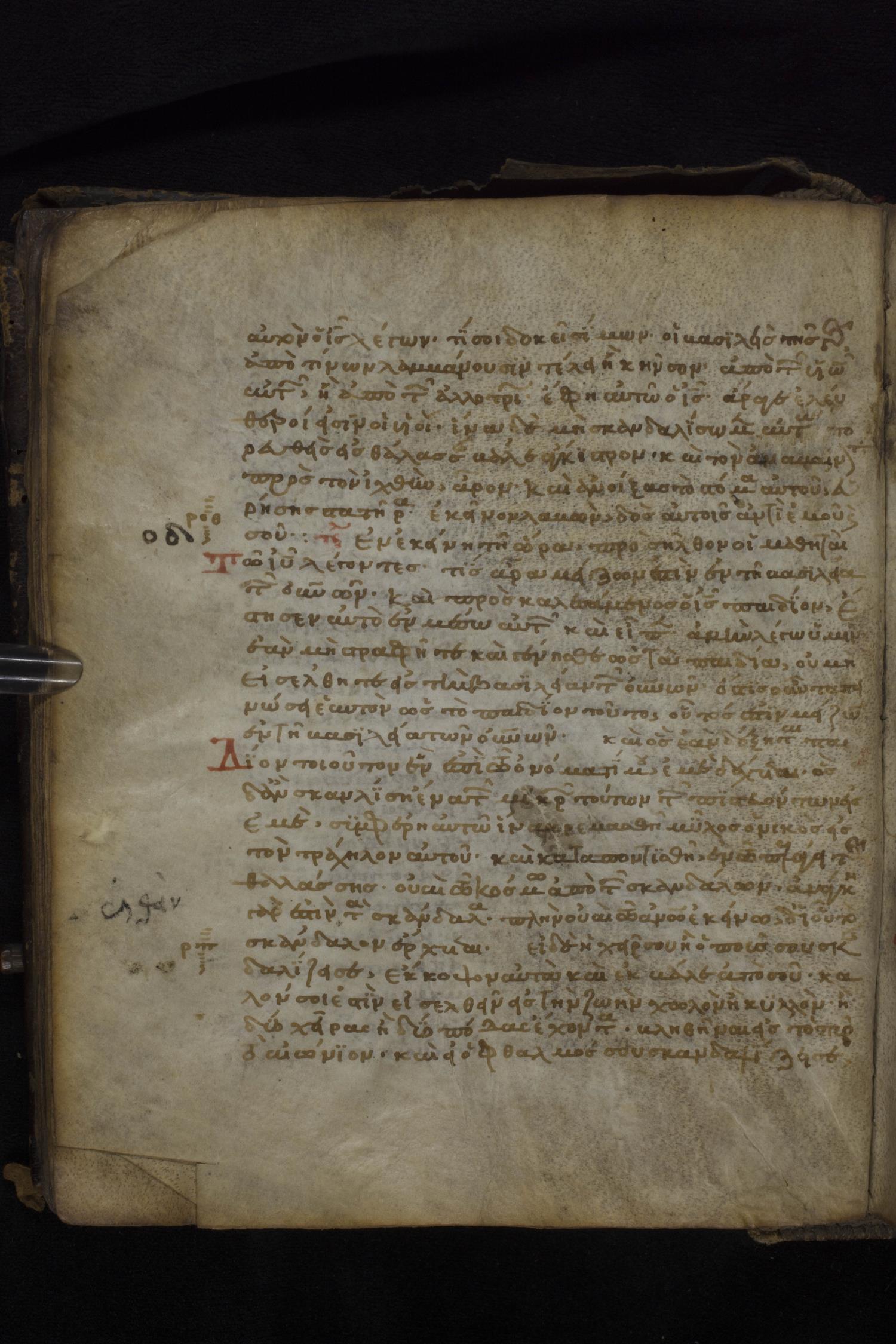 Twelfth century minuscule of the Gospels on parchment; 181 leaves, 1 column, 23-24 lines per column. Images were taken at the National Library of Greece in Athens.