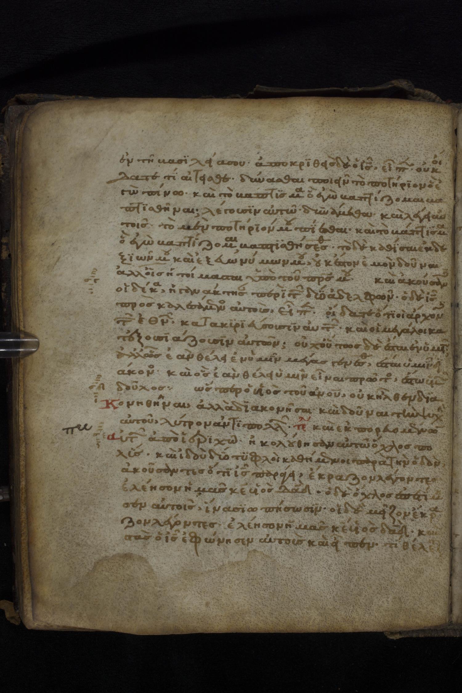 Twelfth century minuscule of the Gospels on parchment; 181 leaves, 1 column, 23-24 lines per column. Images were taken at the National Library of Greece in Athens.