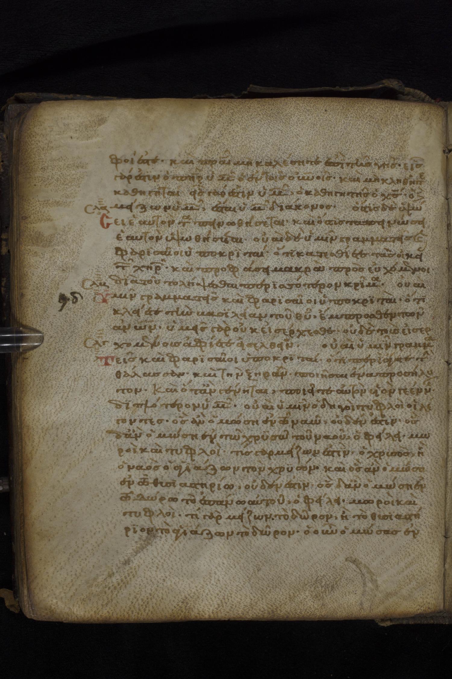 Twelfth century minuscule of the Gospels on parchment; 181 leaves, 1 column, 23-24 lines per column. Images were taken at the National Library of Greece in Athens.