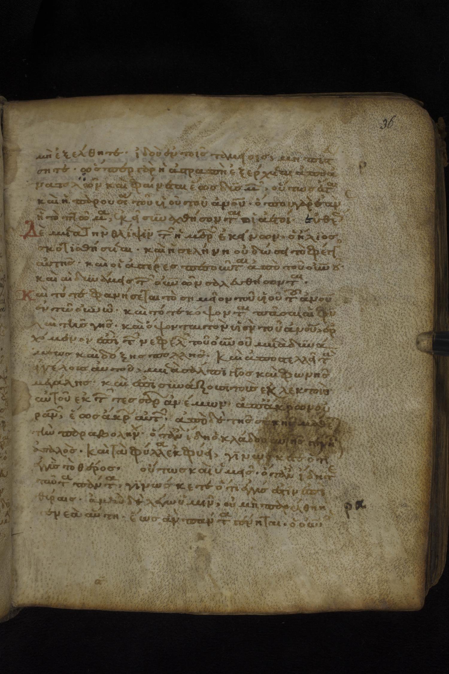 Twelfth century minuscule of the Gospels on parchment; 181 leaves, 1 column, 23-24 lines per column. Images were taken at the National Library of Greece in Athens.