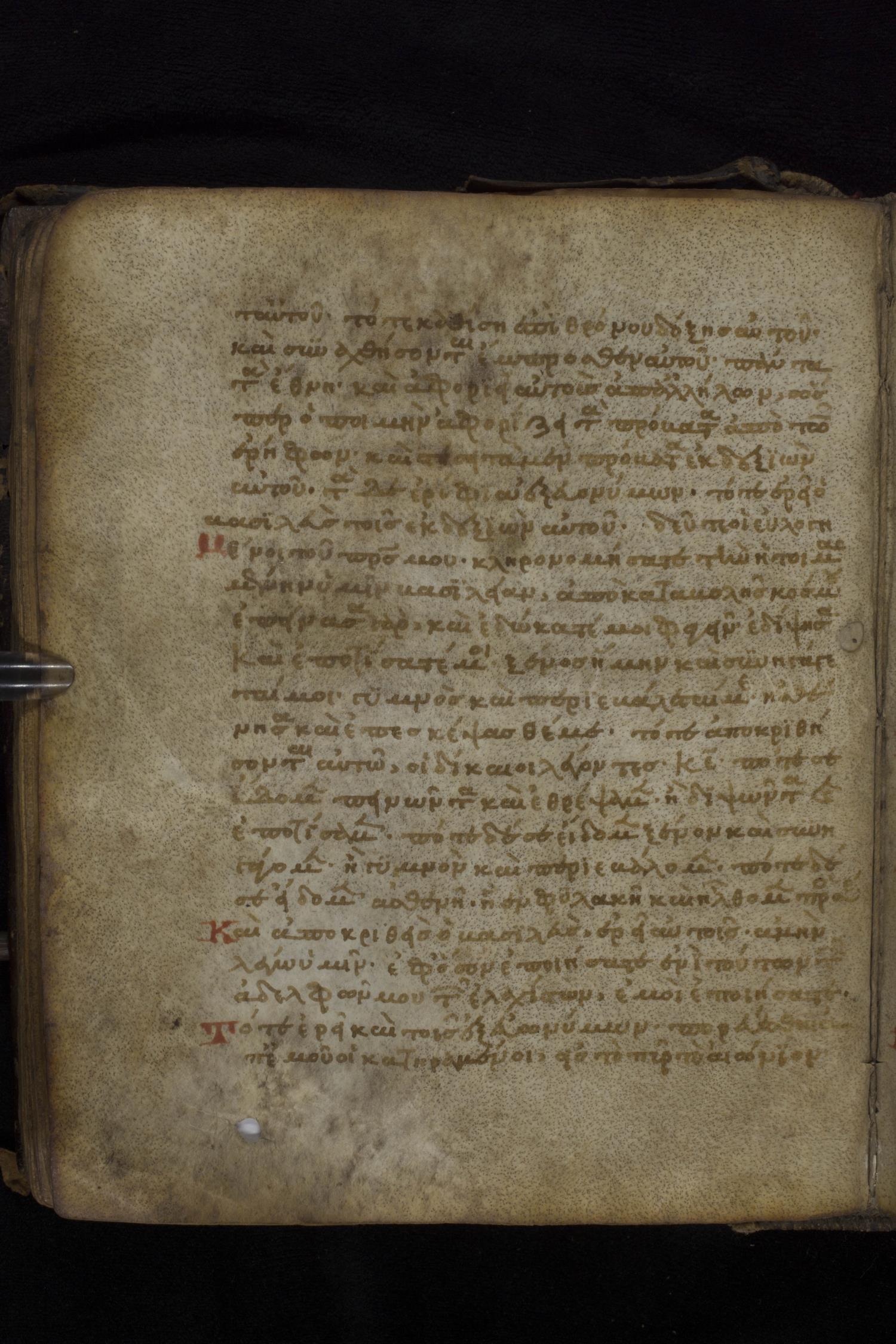 Twelfth century minuscule of the Gospels on parchment; 181 leaves, 1 column, 23-24 lines per column. Images were taken at the National Library of Greece in Athens.
