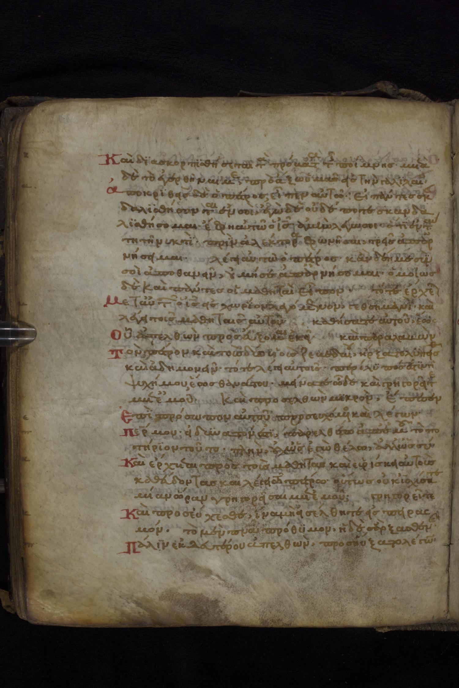 Twelfth century minuscule of the Gospels on parchment; 181 leaves, 1 column, 23-24 lines per column. Images were taken at the National Library of Greece in Athens.