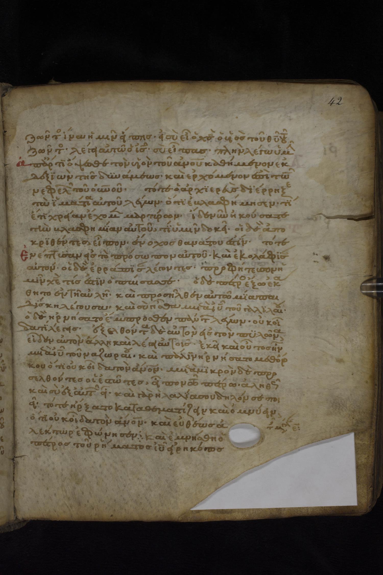 Twelfth century minuscule of the Gospels on parchment; 181 leaves, 1 column, 23-24 lines per column. Images were taken at the National Library of Greece in Athens.