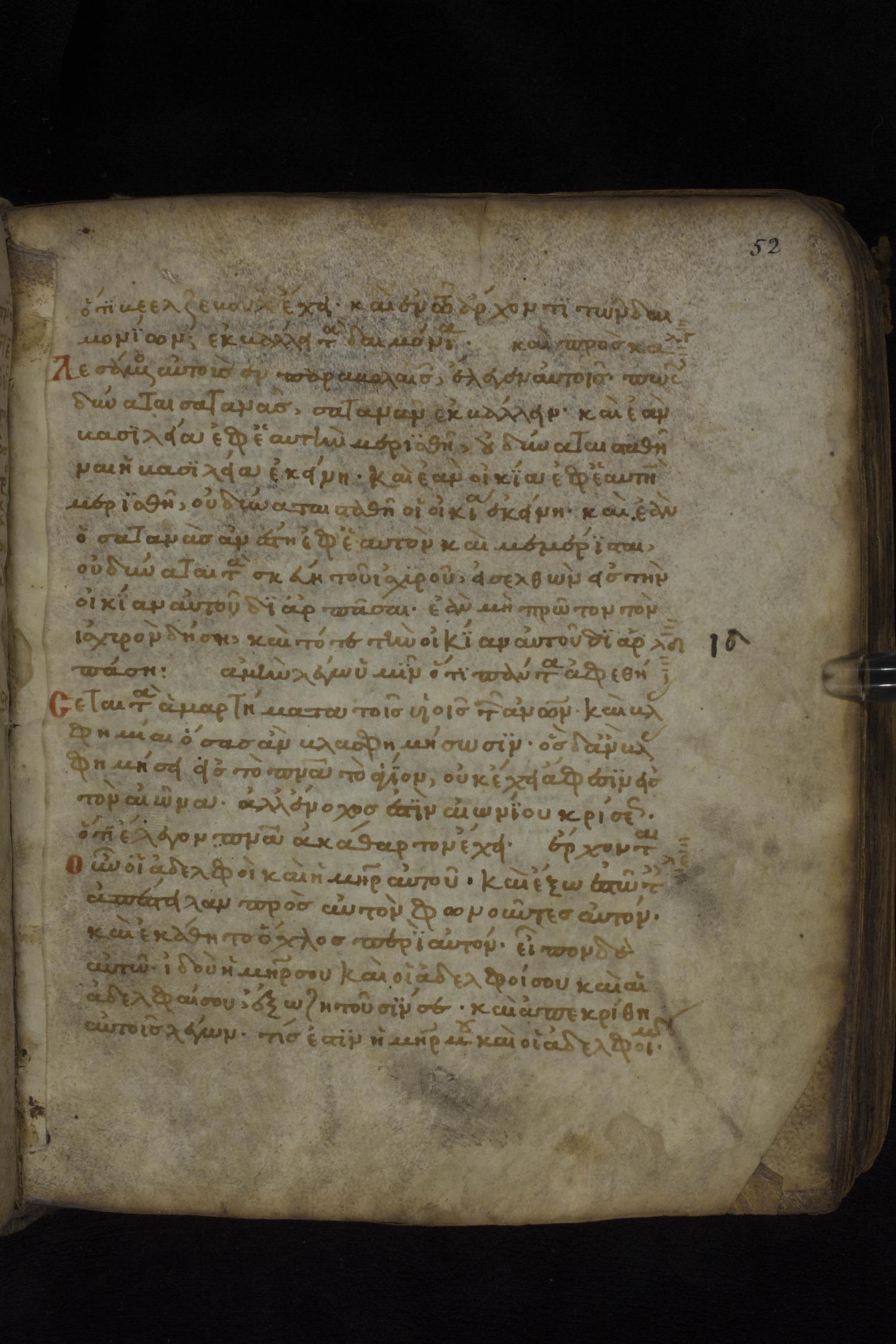 Twelfth century minuscule of the Gospels on parchment; 181 leaves, 1 column, 23-24 lines per column. Images were taken at the National Library of Greece in Athens.