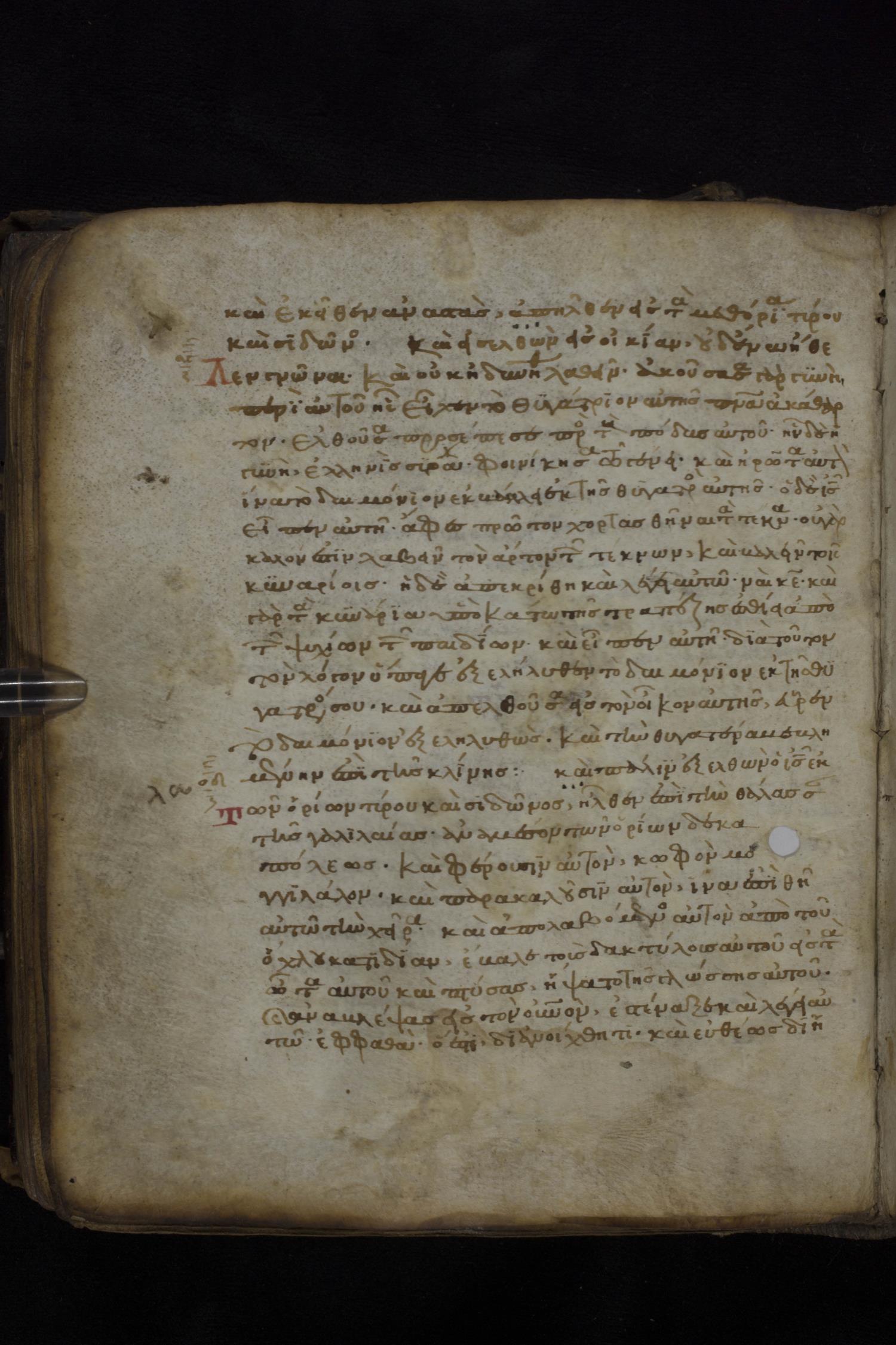 Twelfth century minuscule of the Gospels on parchment; 181 leaves, 1 column, 23-24 lines per column. Images were taken at the National Library of Greece in Athens.