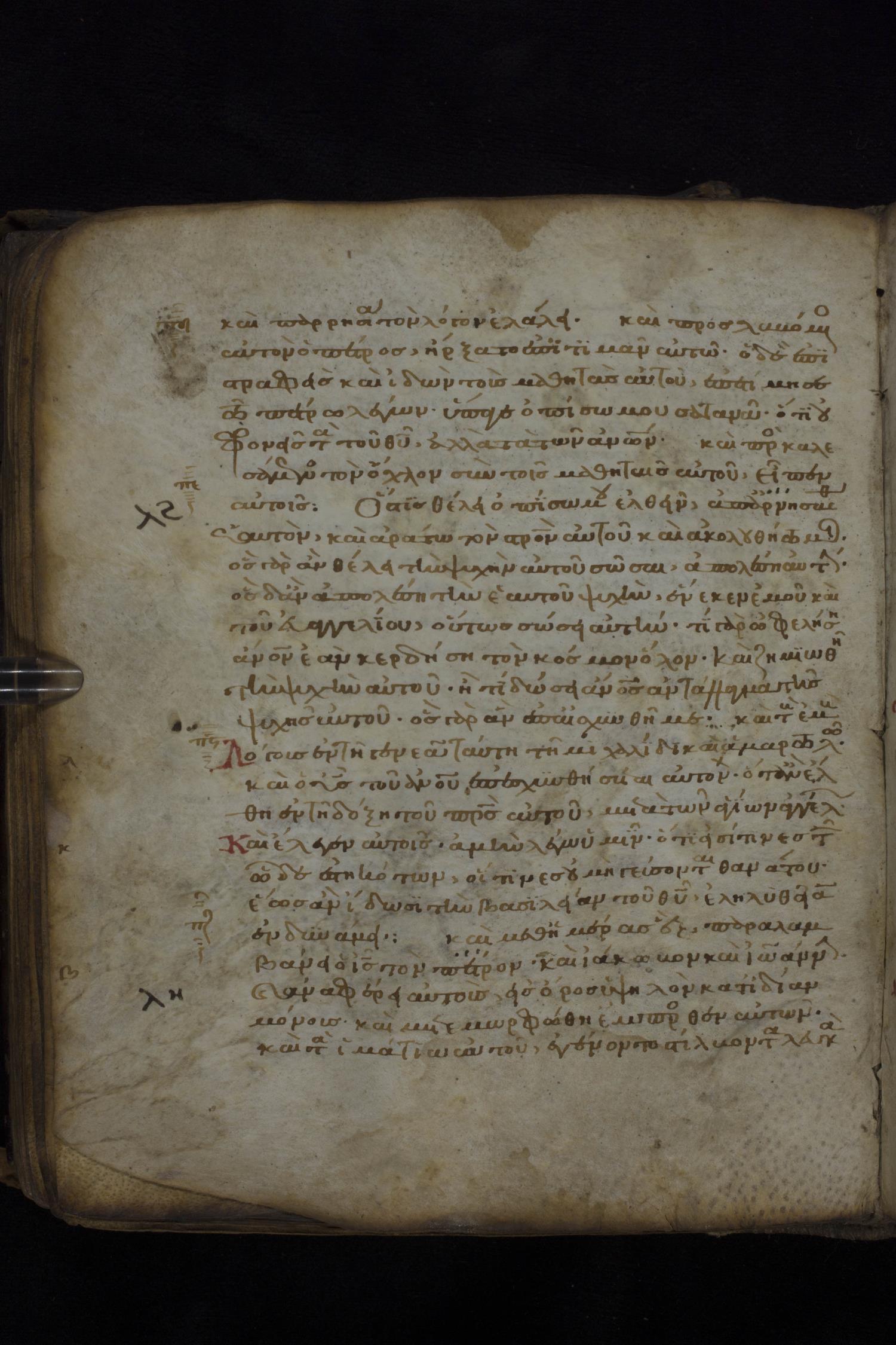 Twelfth century minuscule of the Gospels on parchment; 181 leaves, 1 column, 23-24 lines per column. Images were taken at the National Library of Greece in Athens.