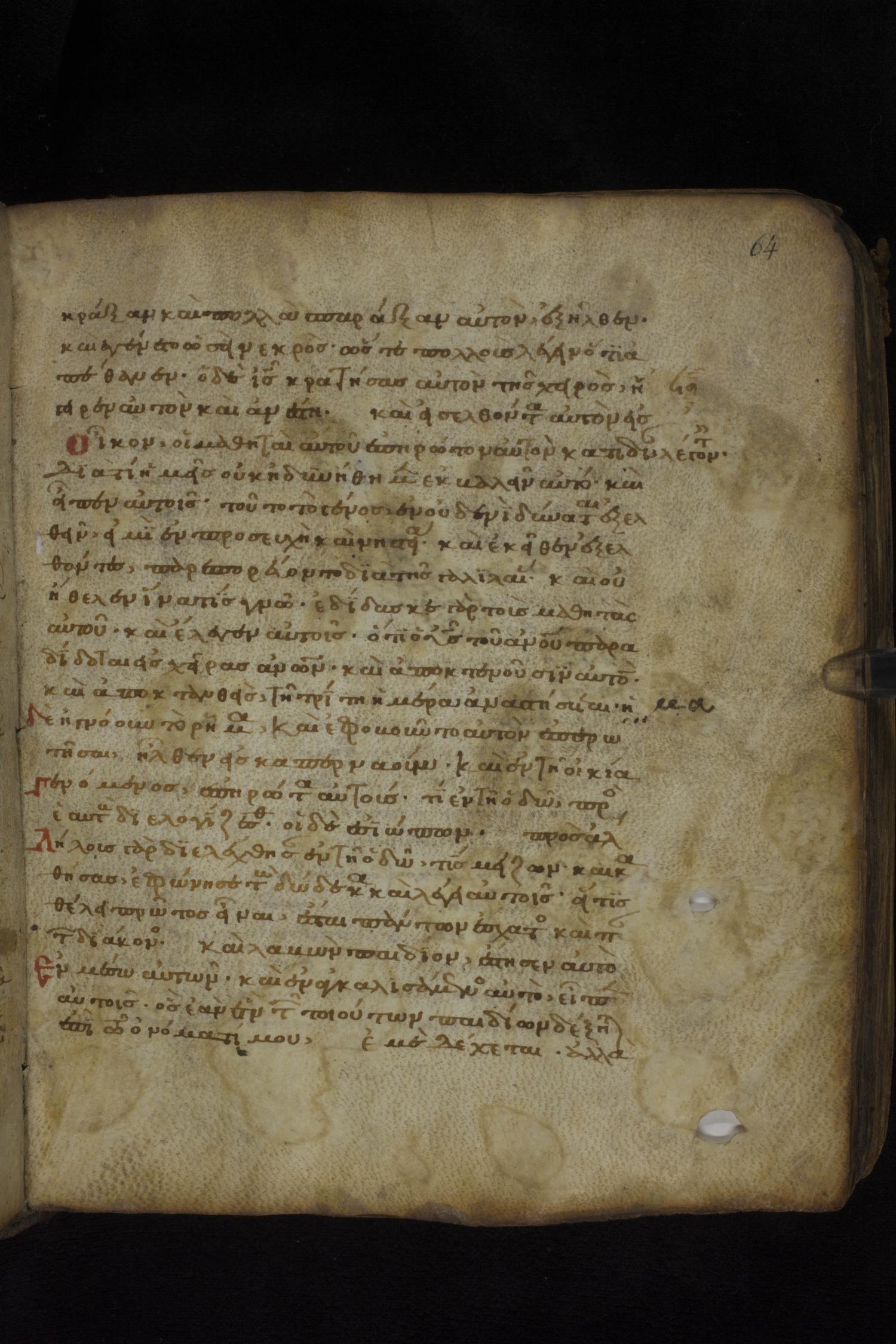 Twelfth century minuscule of the Gospels on parchment; 181 leaves, 1 column, 23-24 lines per column. Images were taken at the National Library of Greece in Athens.